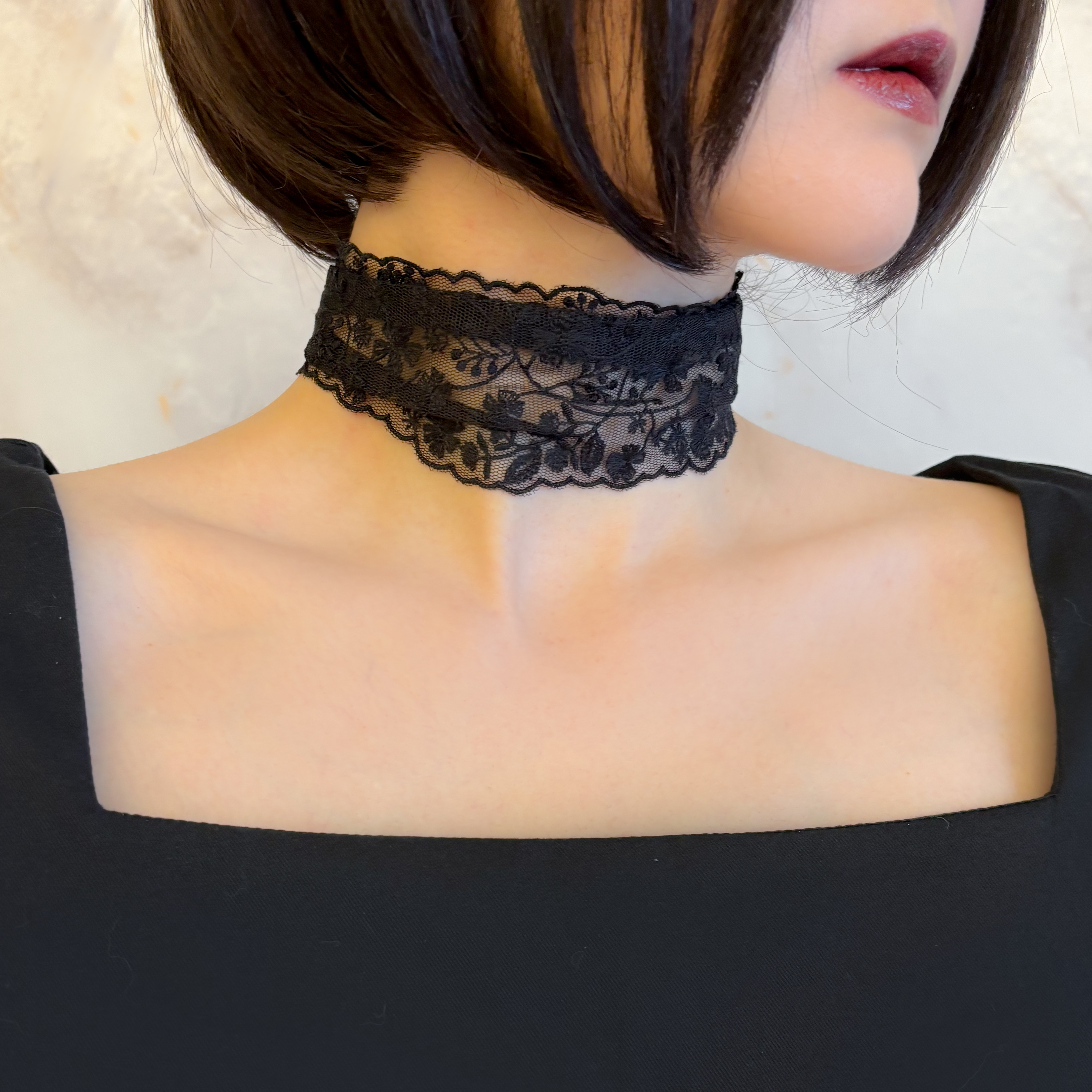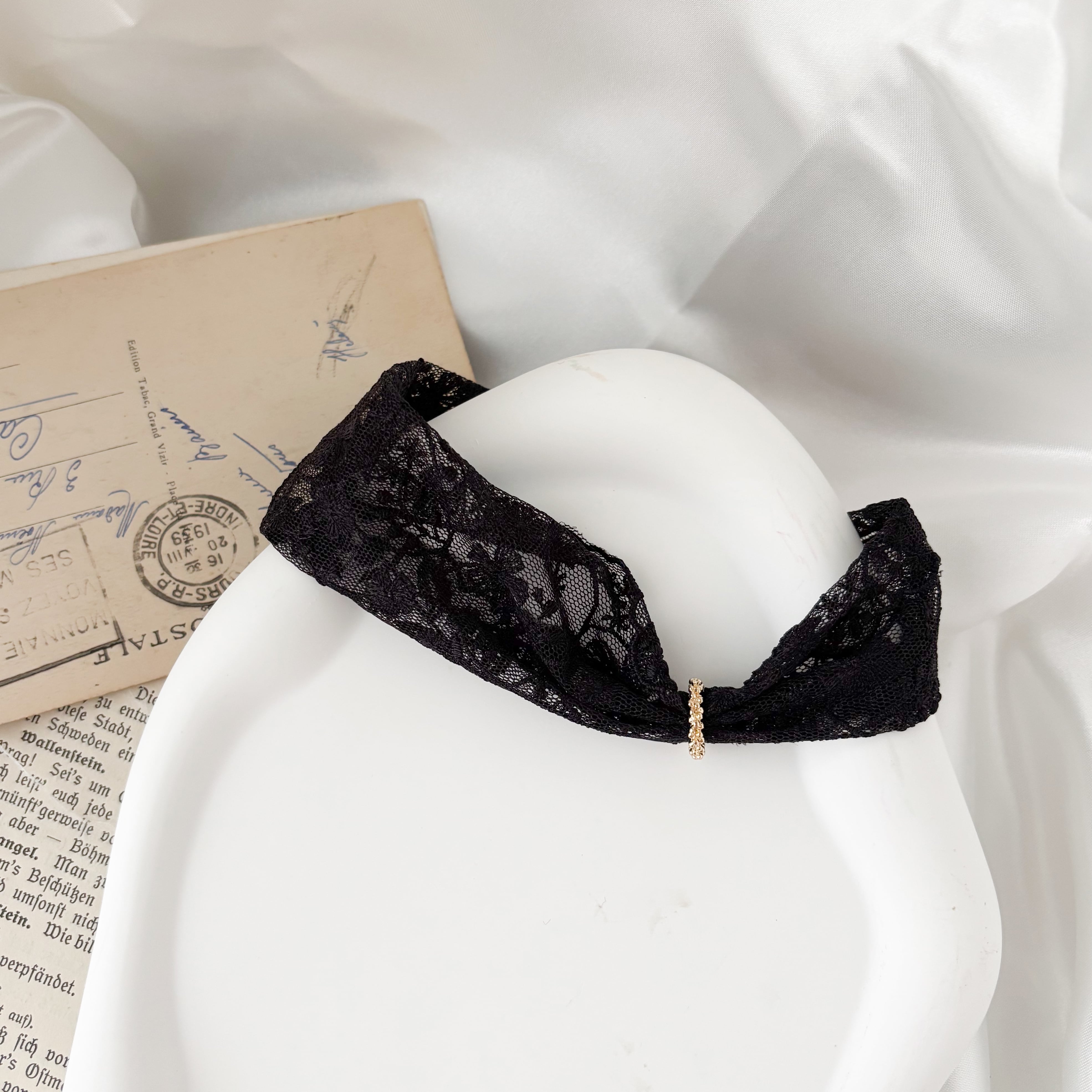 記憶という名の風と共に:黒レースのスカーフ風チョーカー SV680