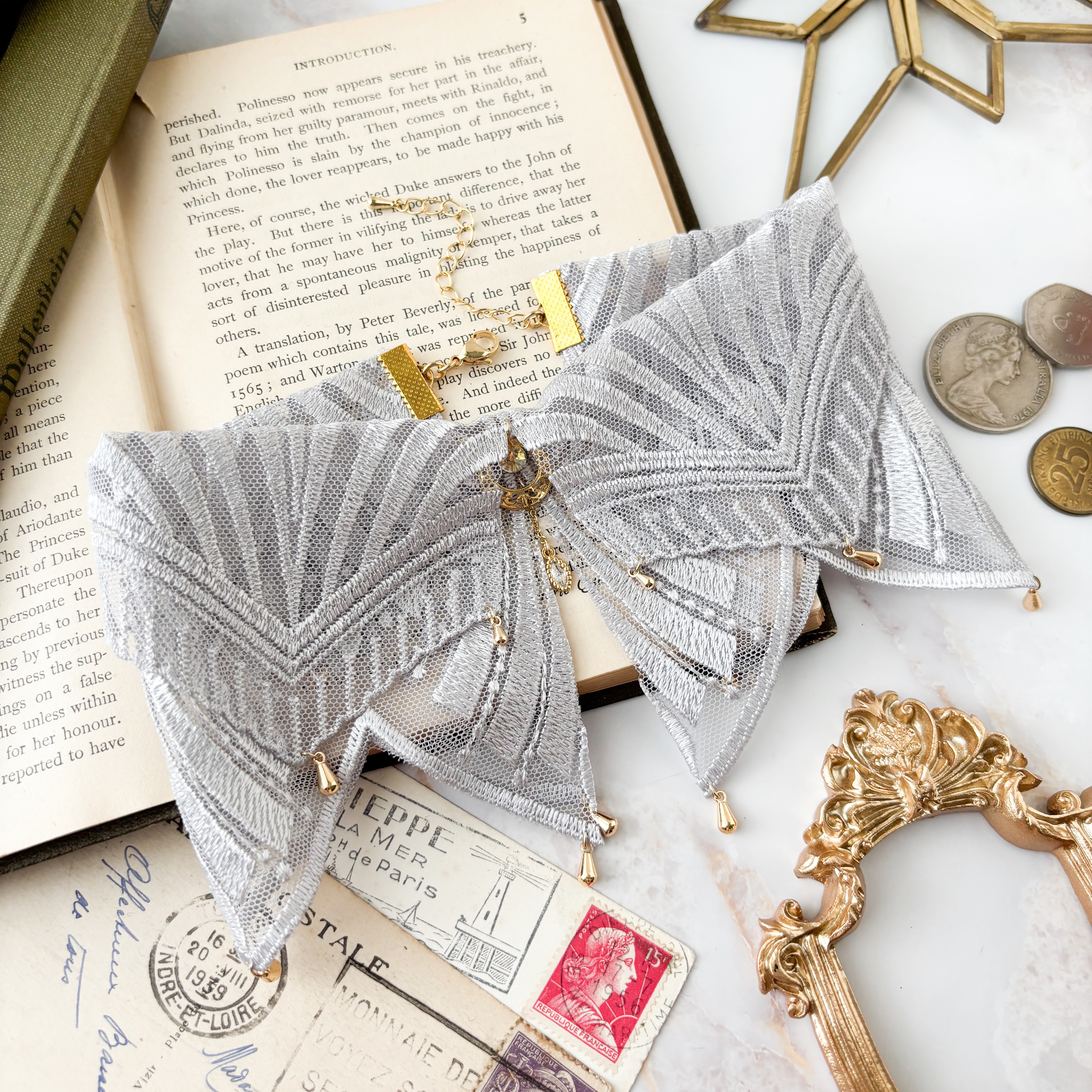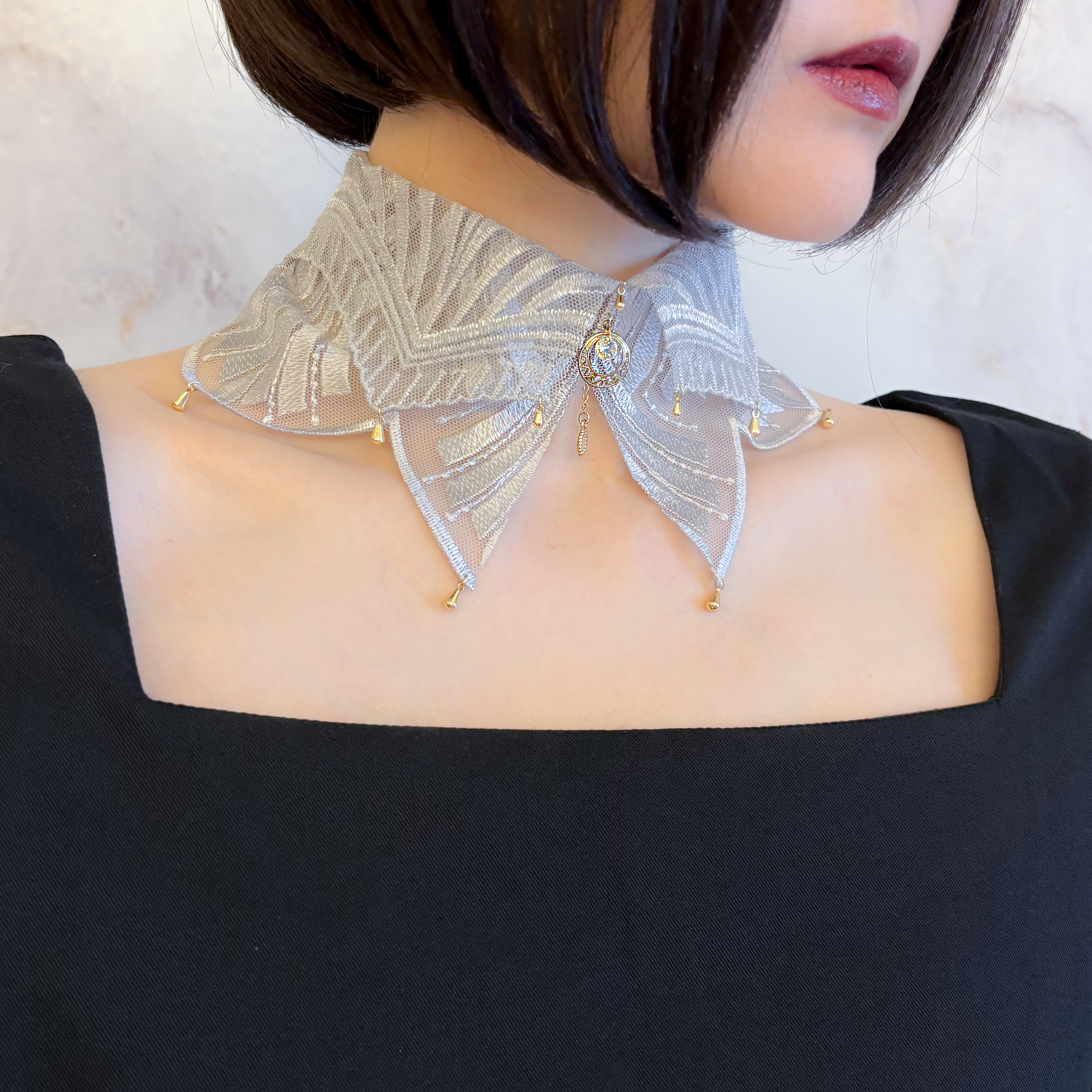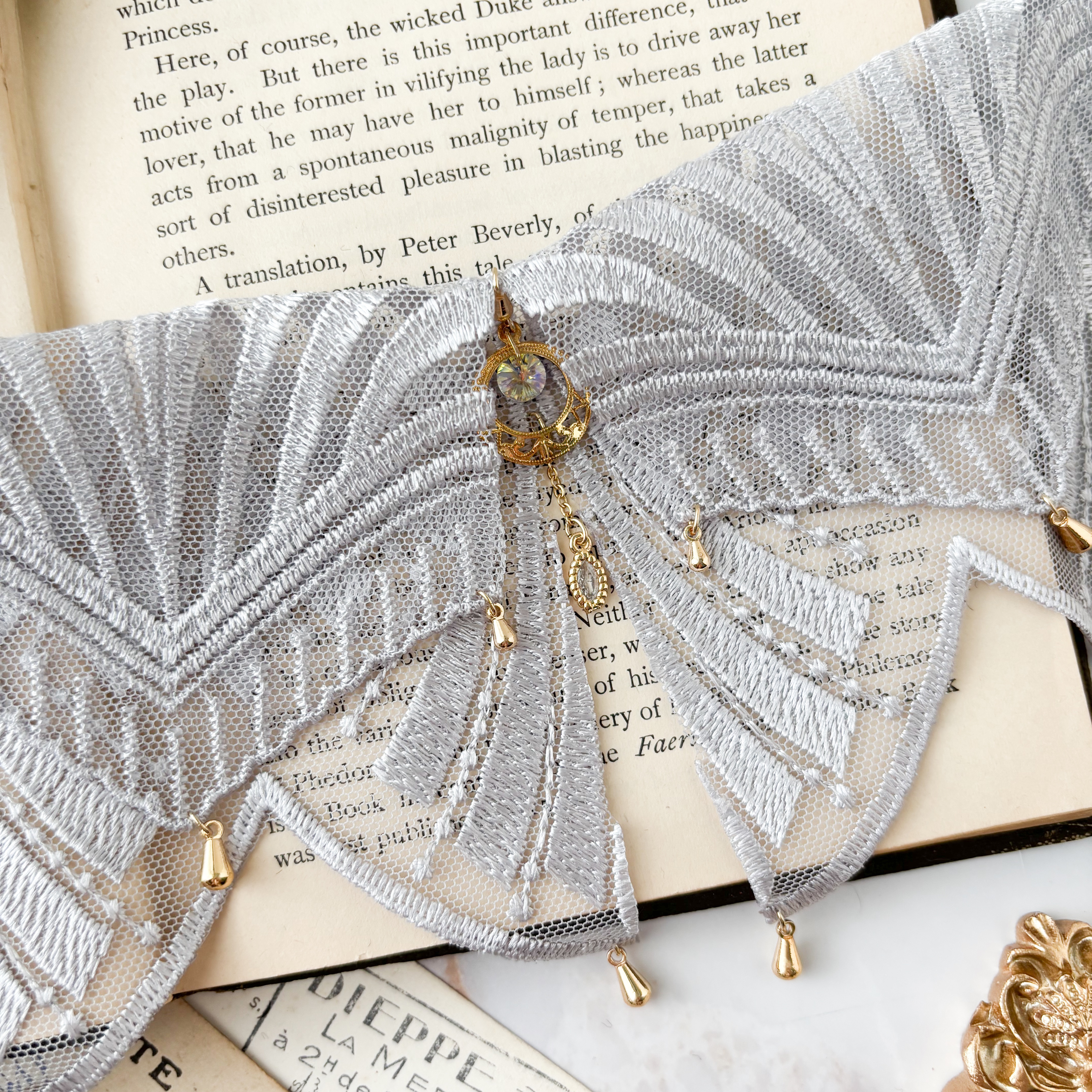 氷の王妃の白昼夢:グレーレースの付け襟チョーカー SV683
