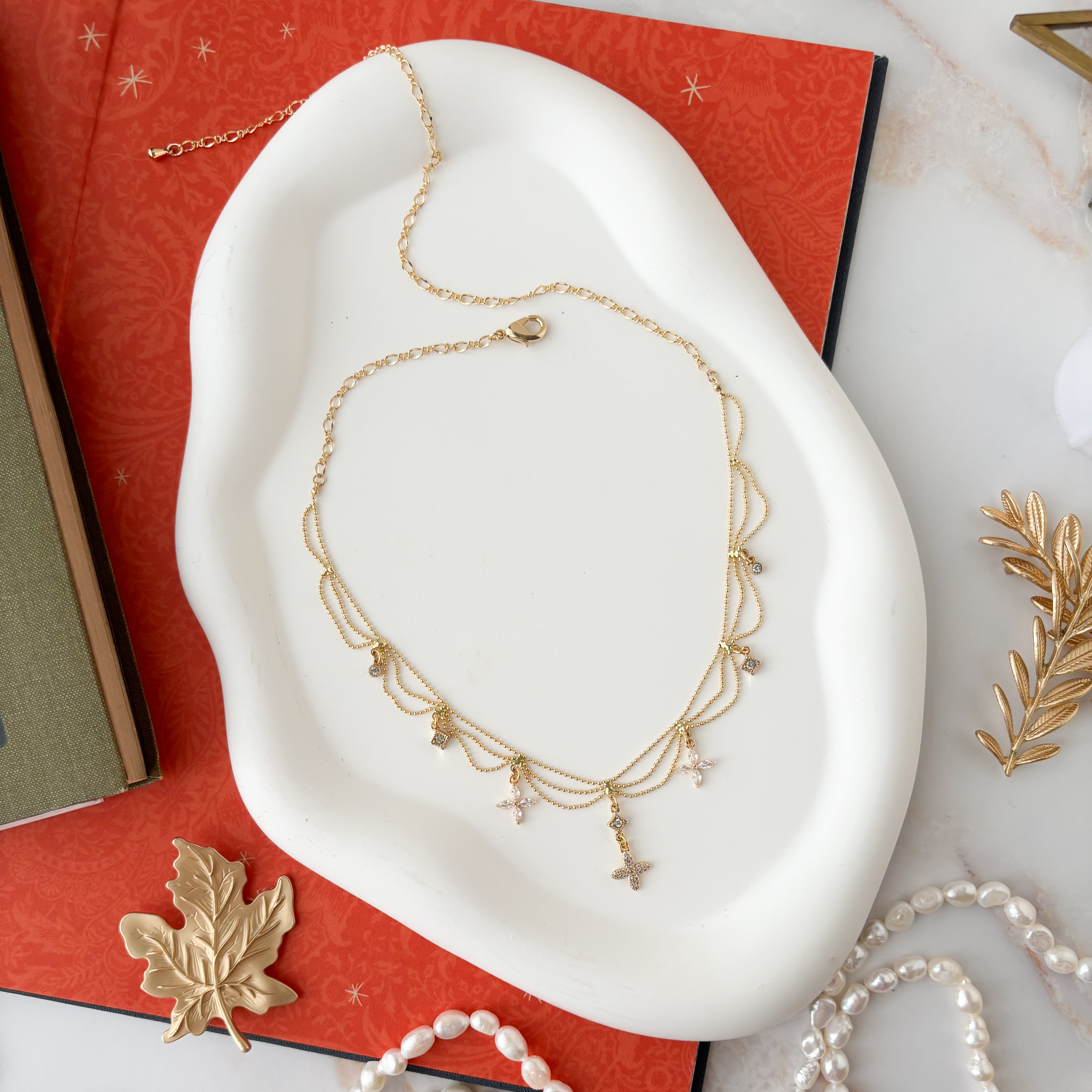小さな光を集めた繊細なチェーンは、イルミネーションの連なりを思わせ、