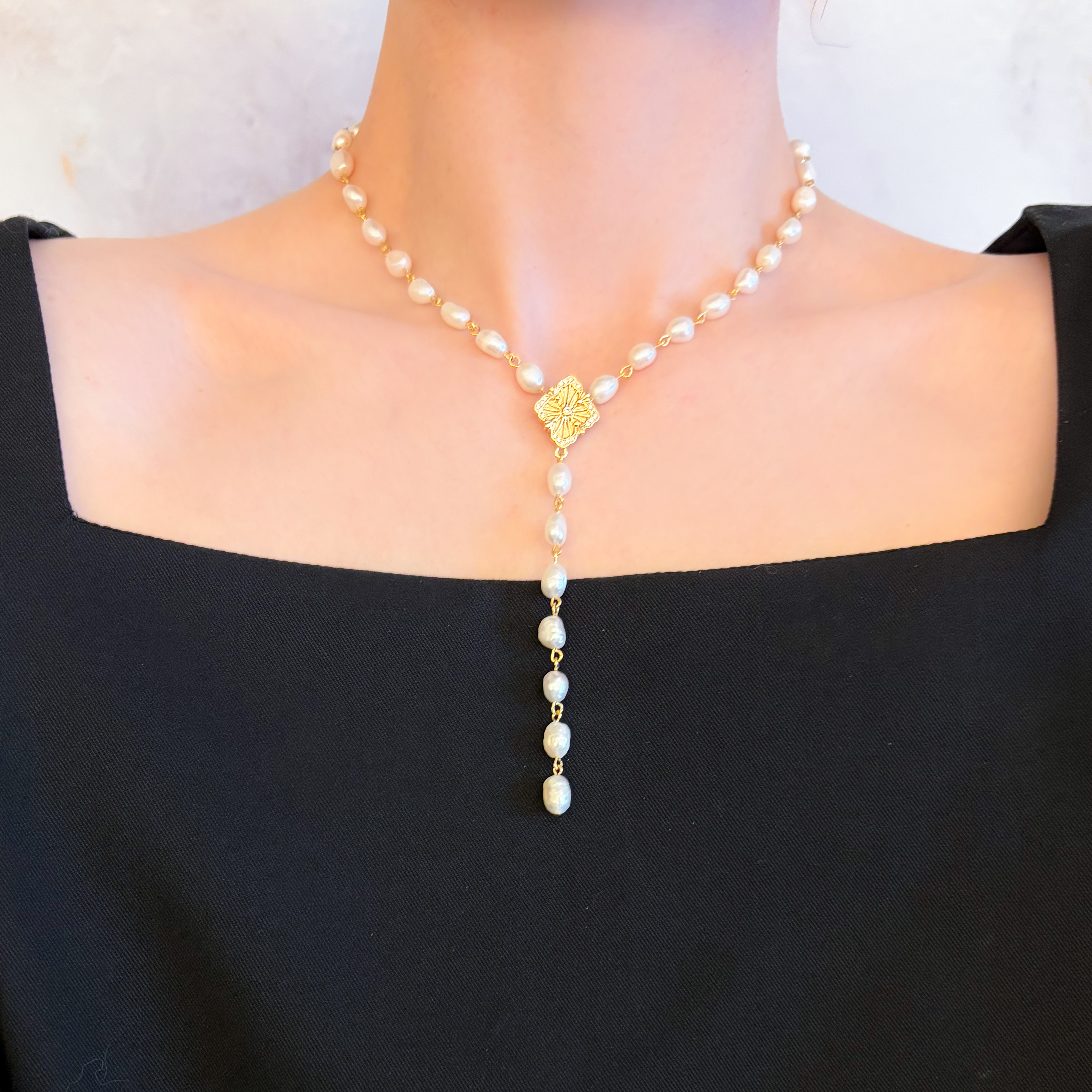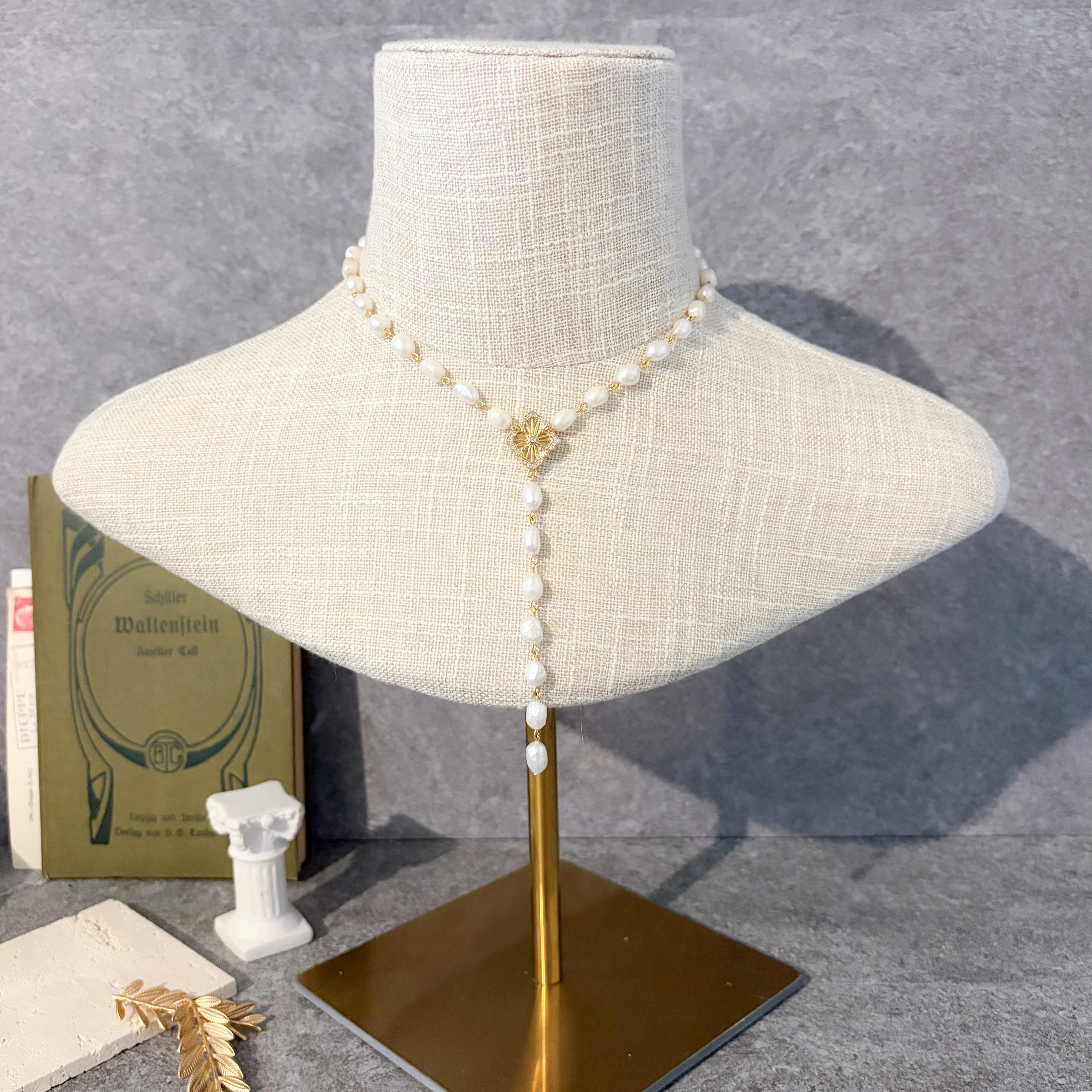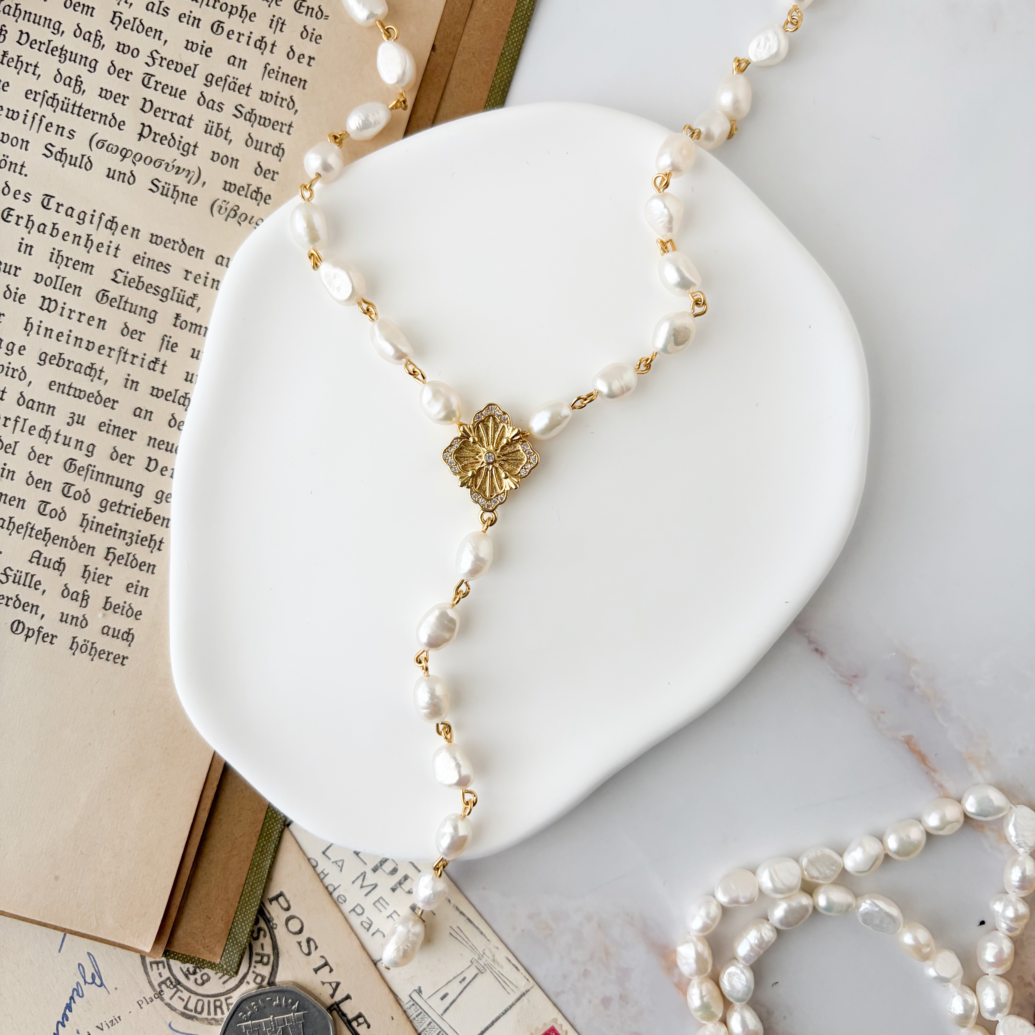 そこから連なる淡水パールが、まるで光のしずくのように静かに揺れます。
