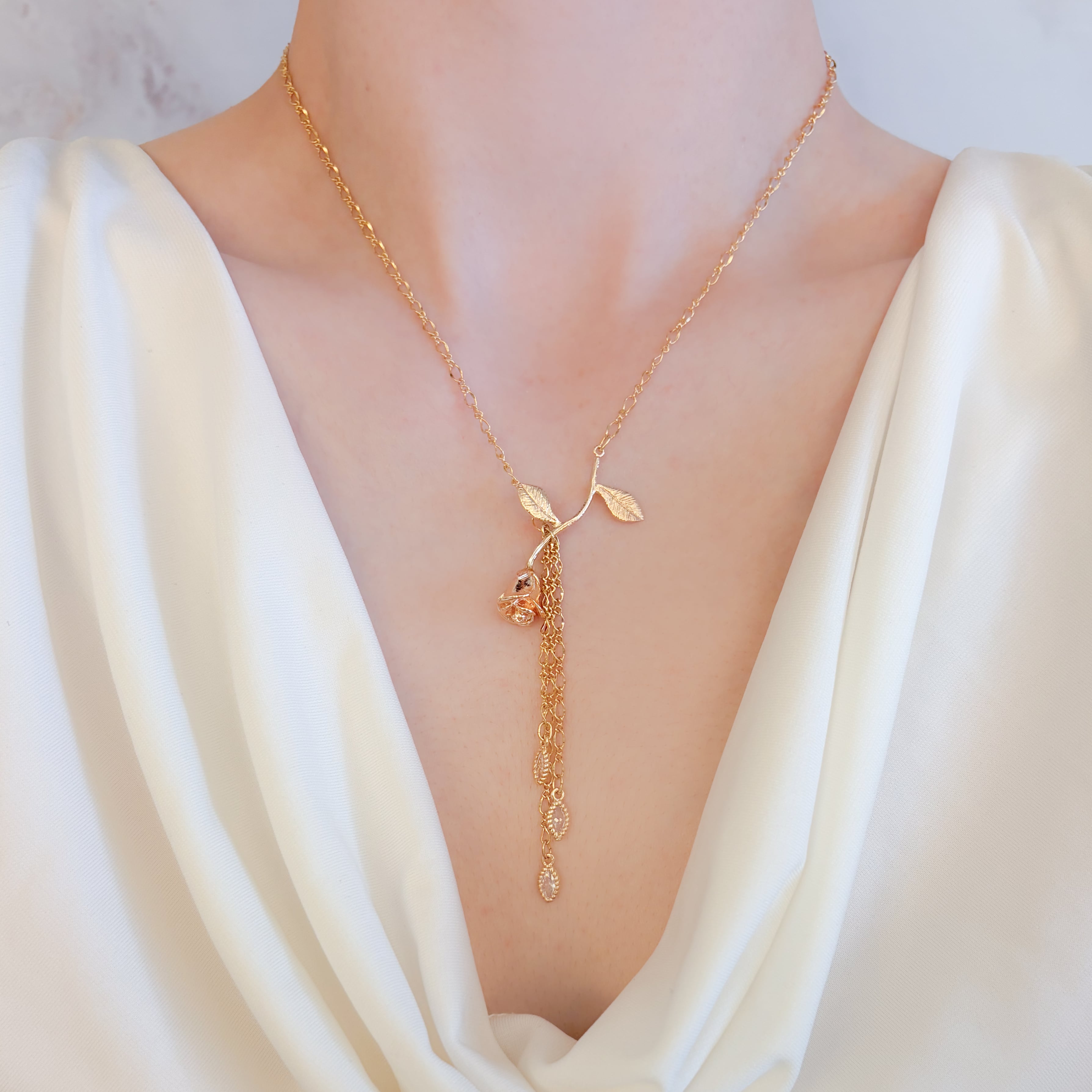 ゴールド:その薔薇の名前には:キュービックジルコニアとバラのチョーカーネックレス SV690G