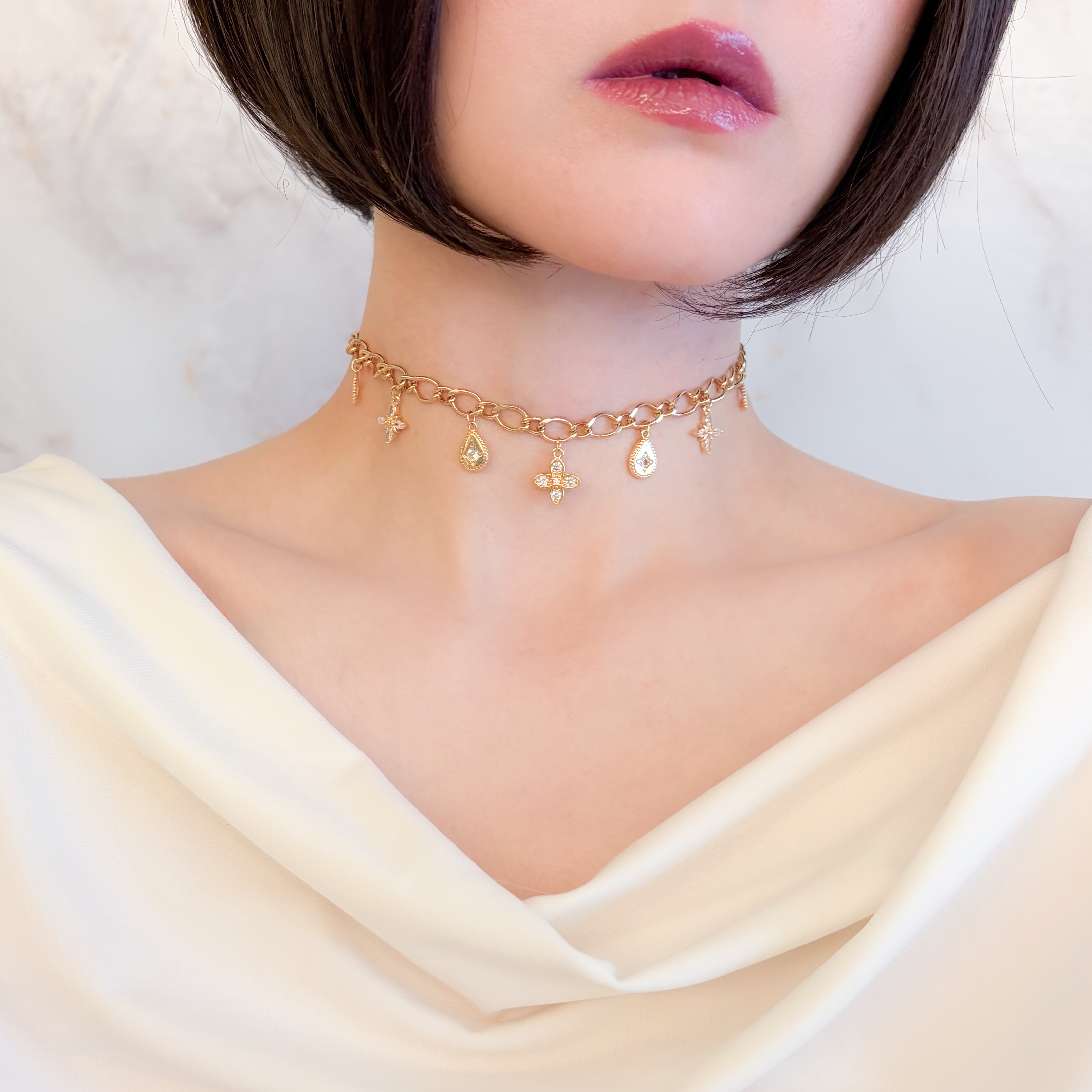 Never Lost:クローバーとキュービックジルコニアのチョーカーネックレス SV691