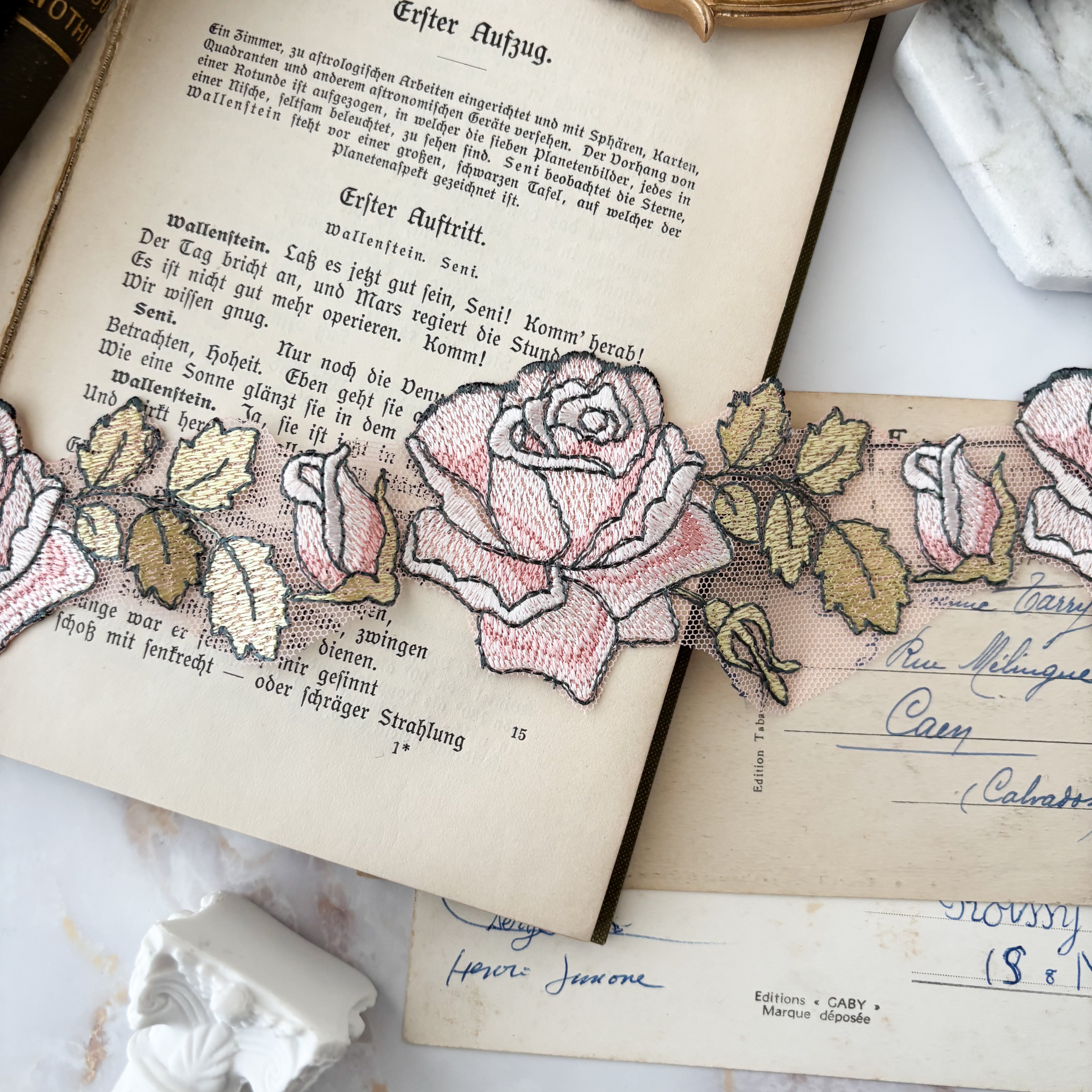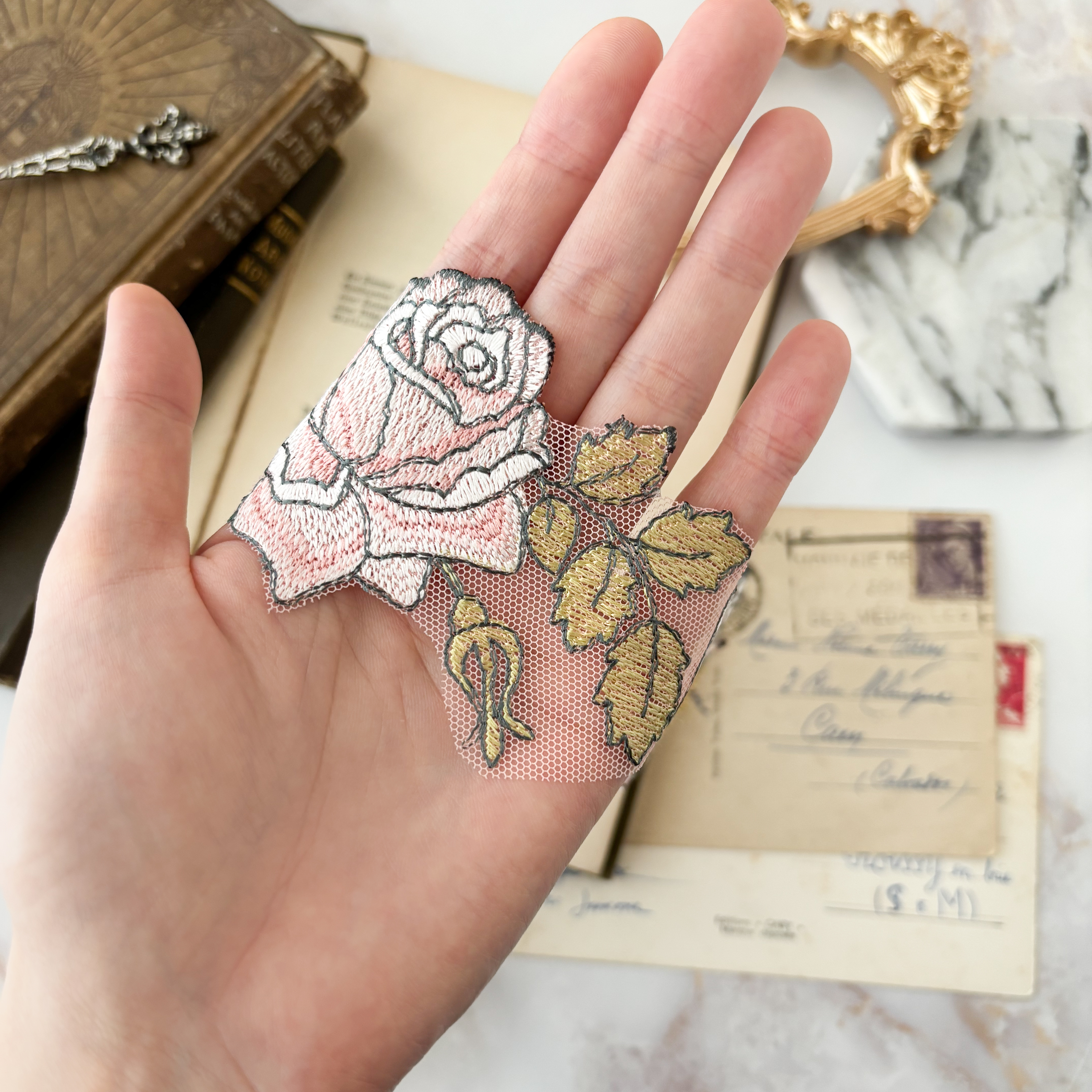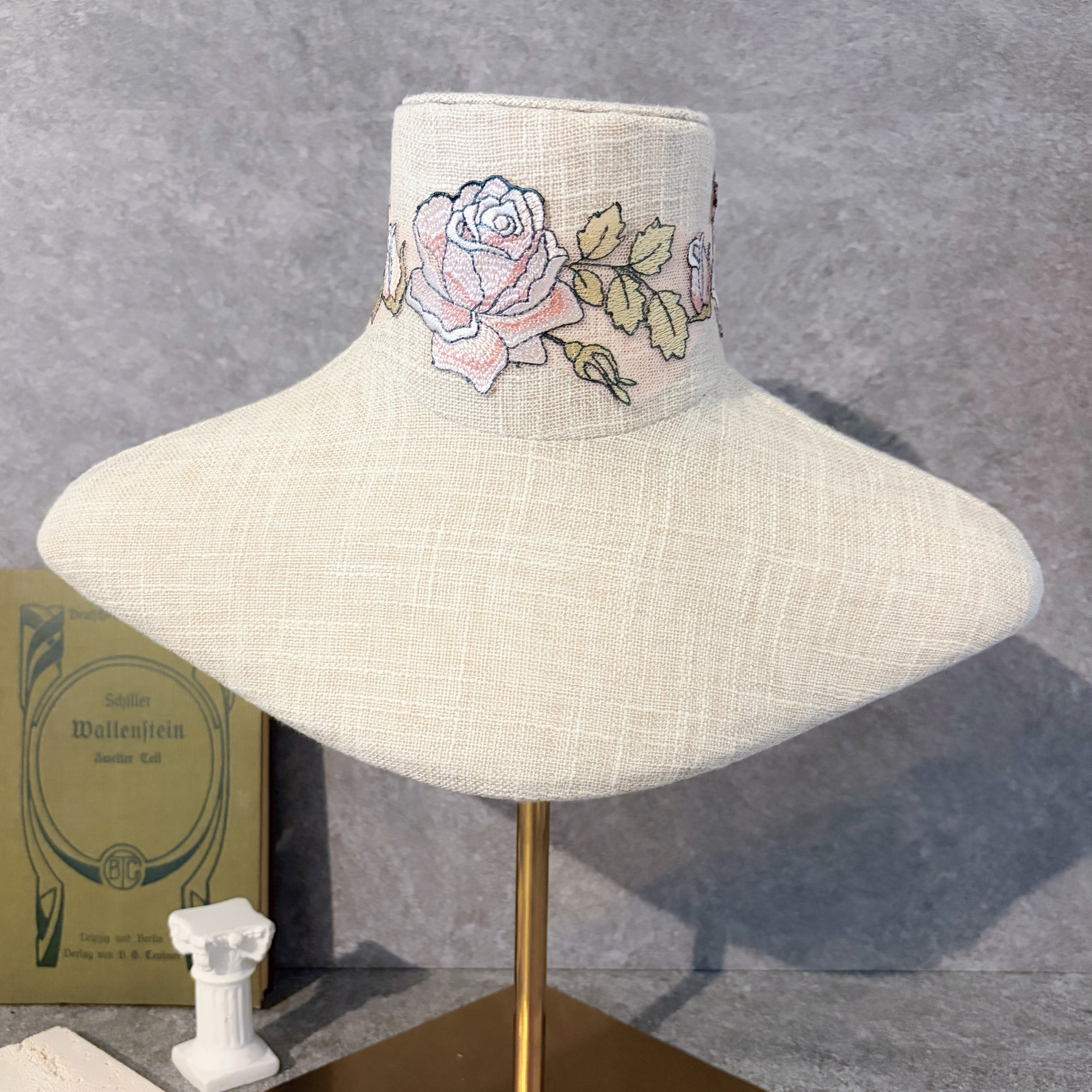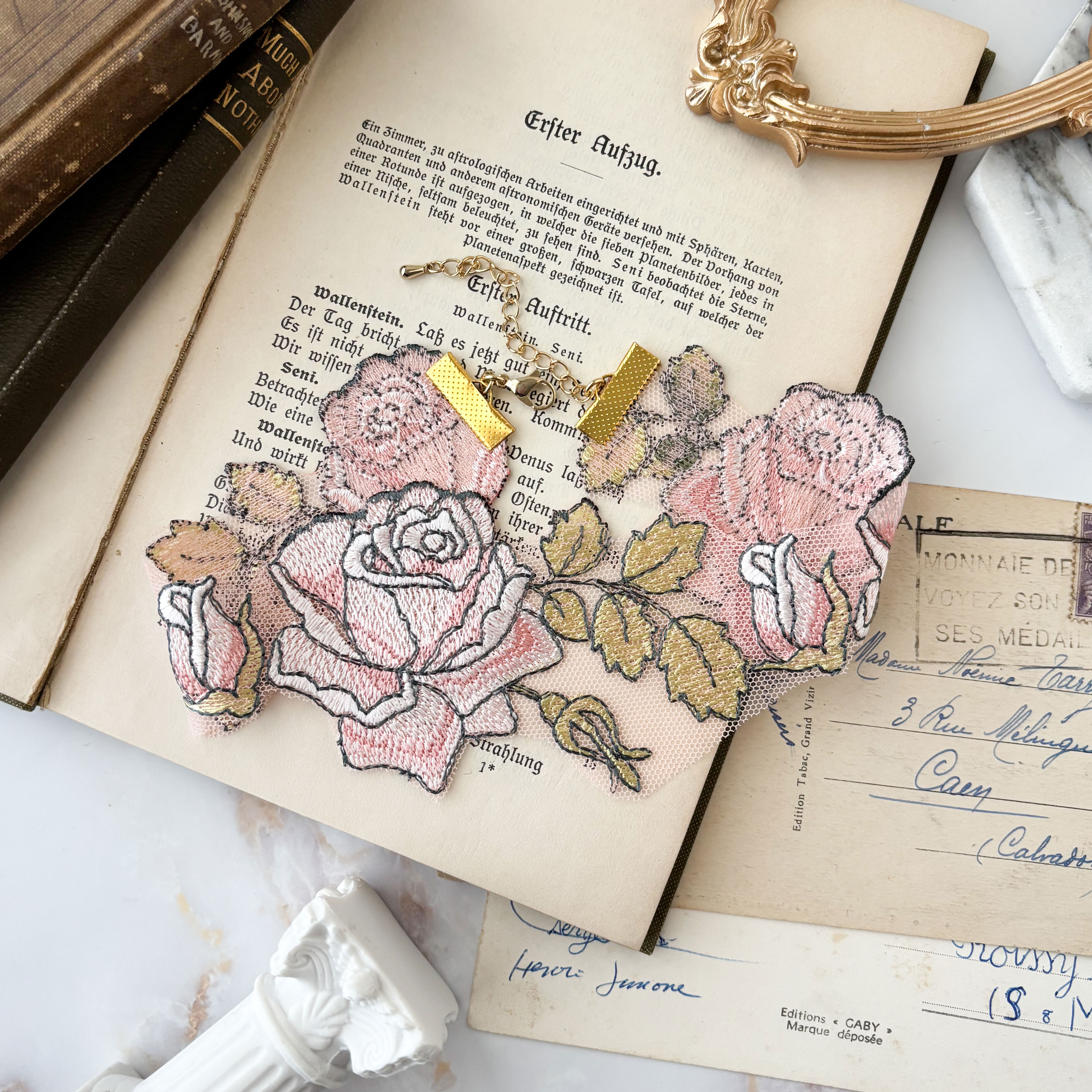 繊細なレースで描かれた薔薇模様は、まるで素肌に溶け込むように首元へ寄り添い、