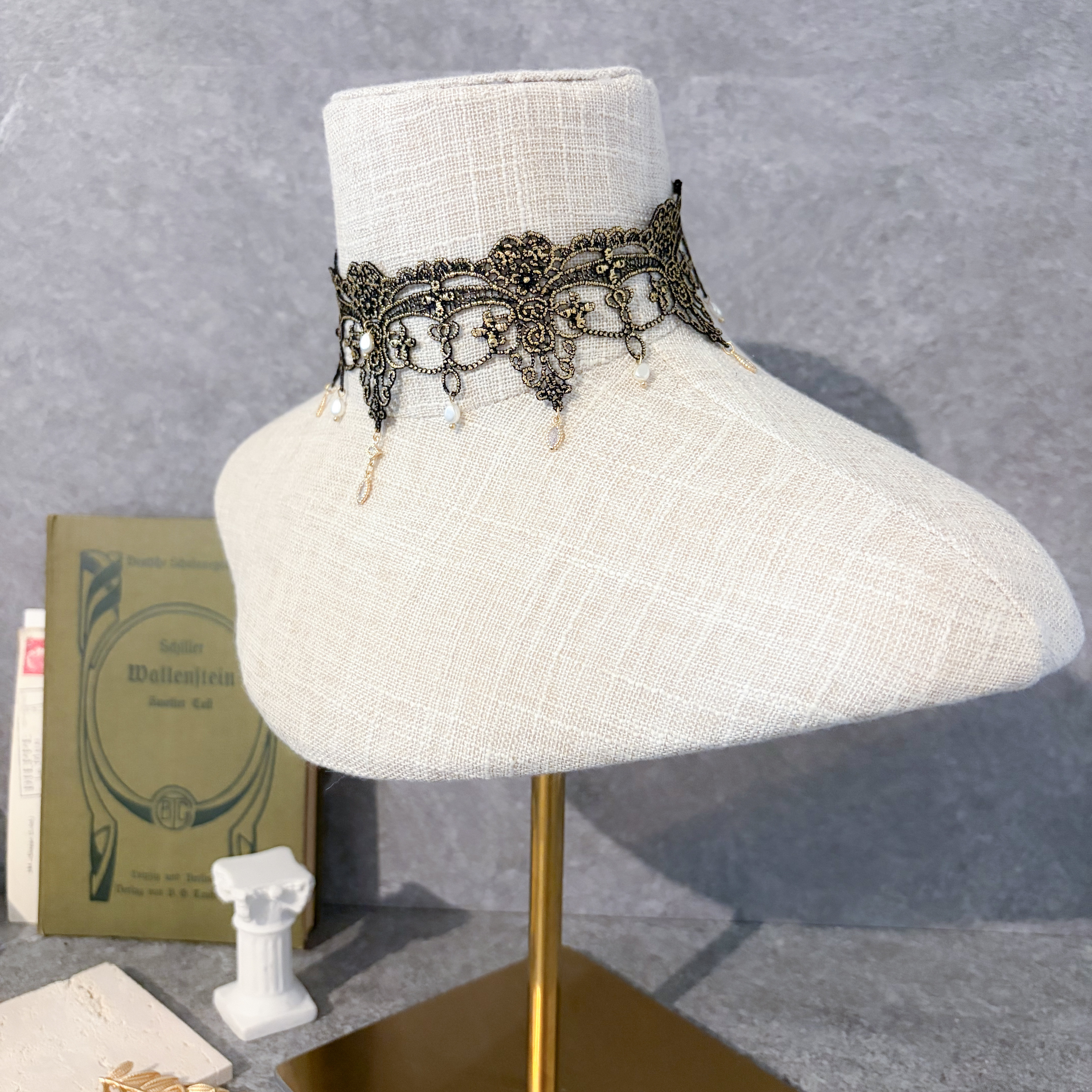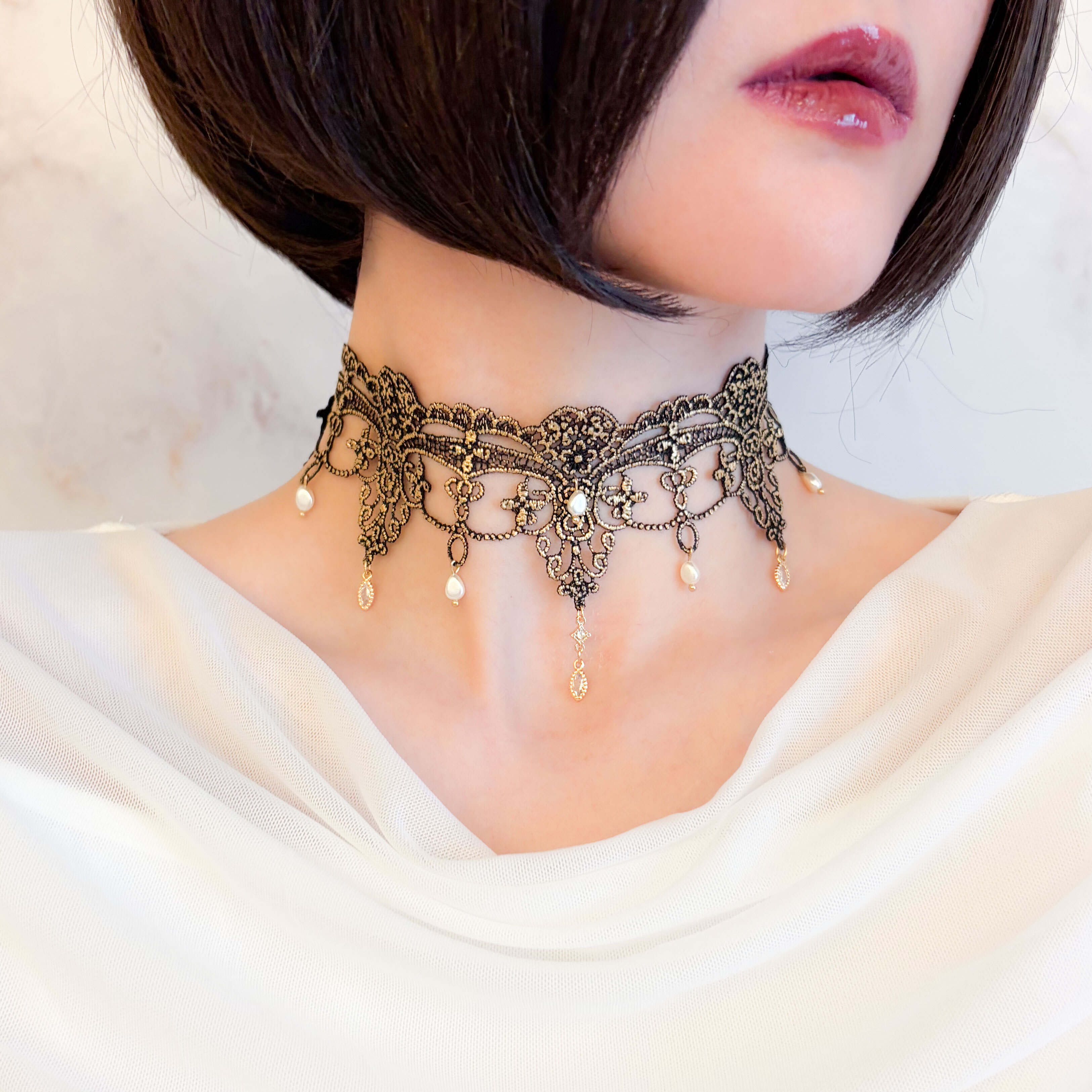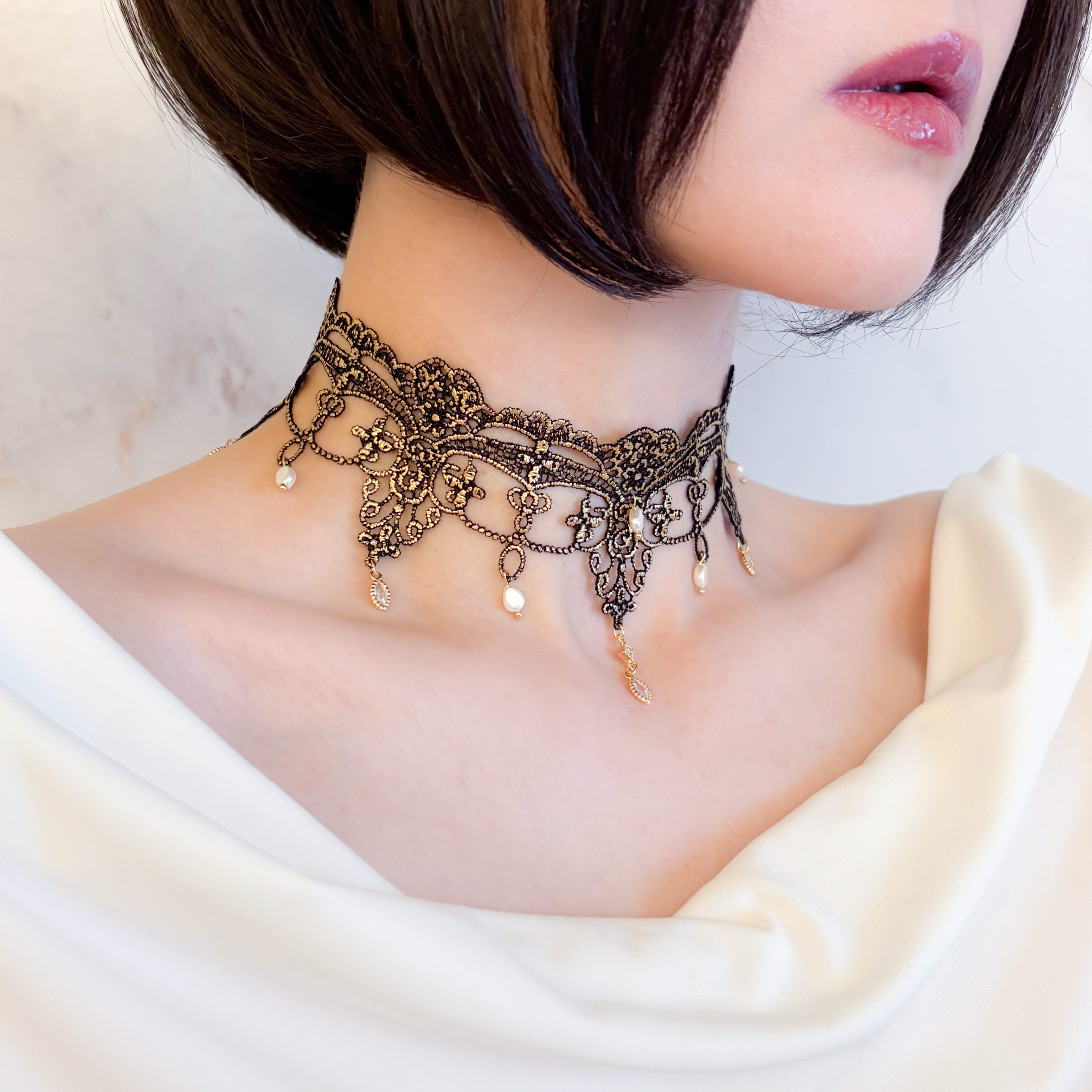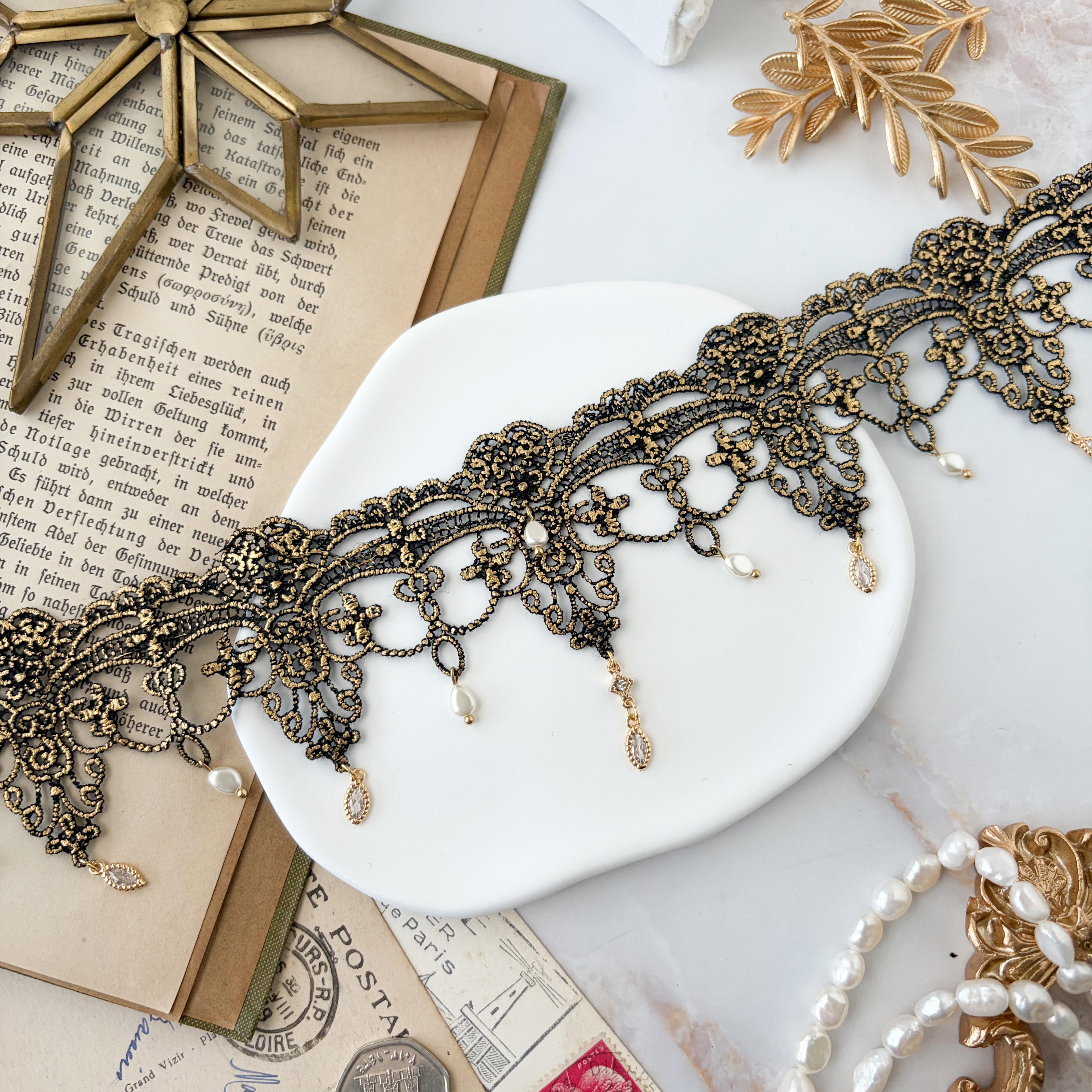 アフロディーテの儚き涙:アンティークゴールドレースのチョーカー SV698