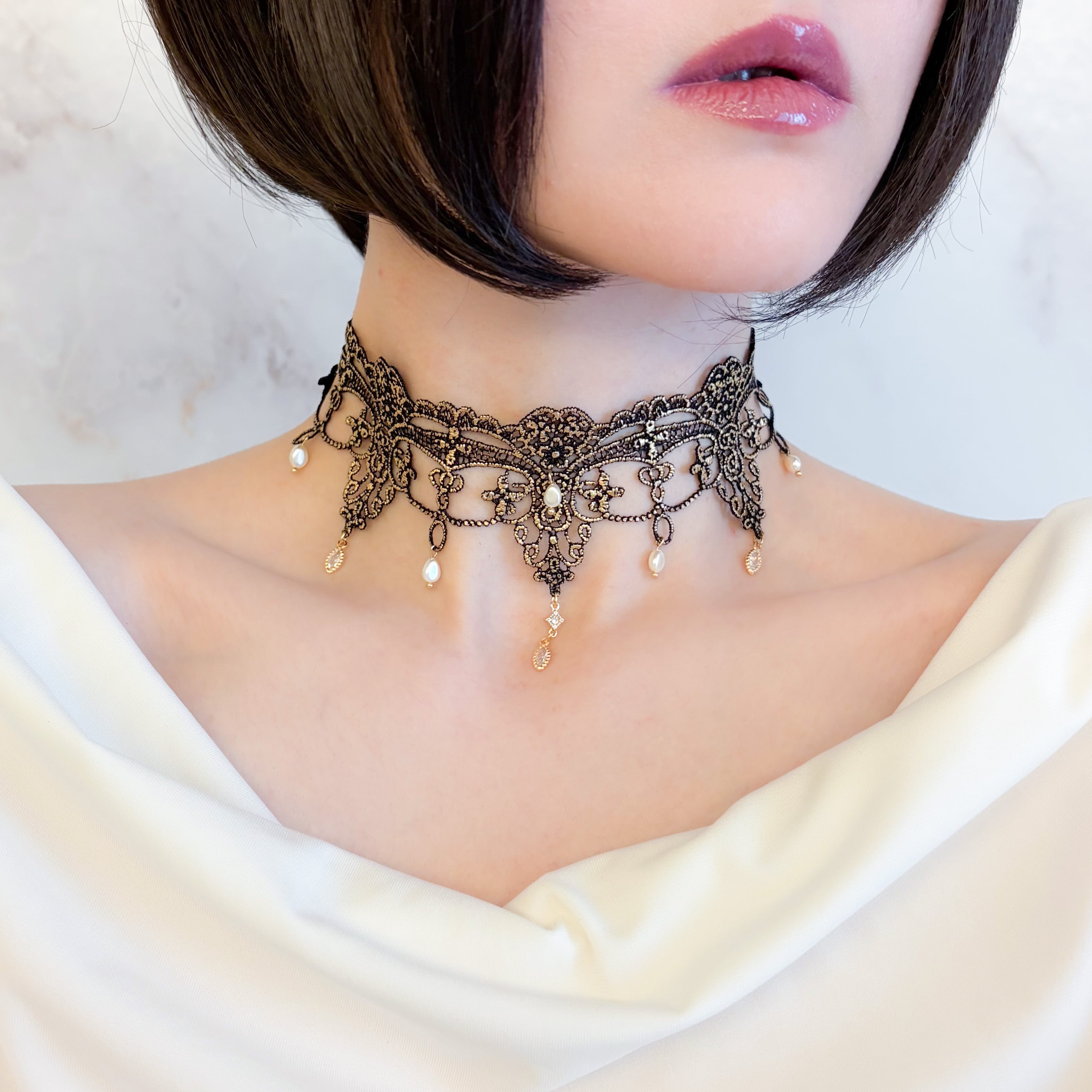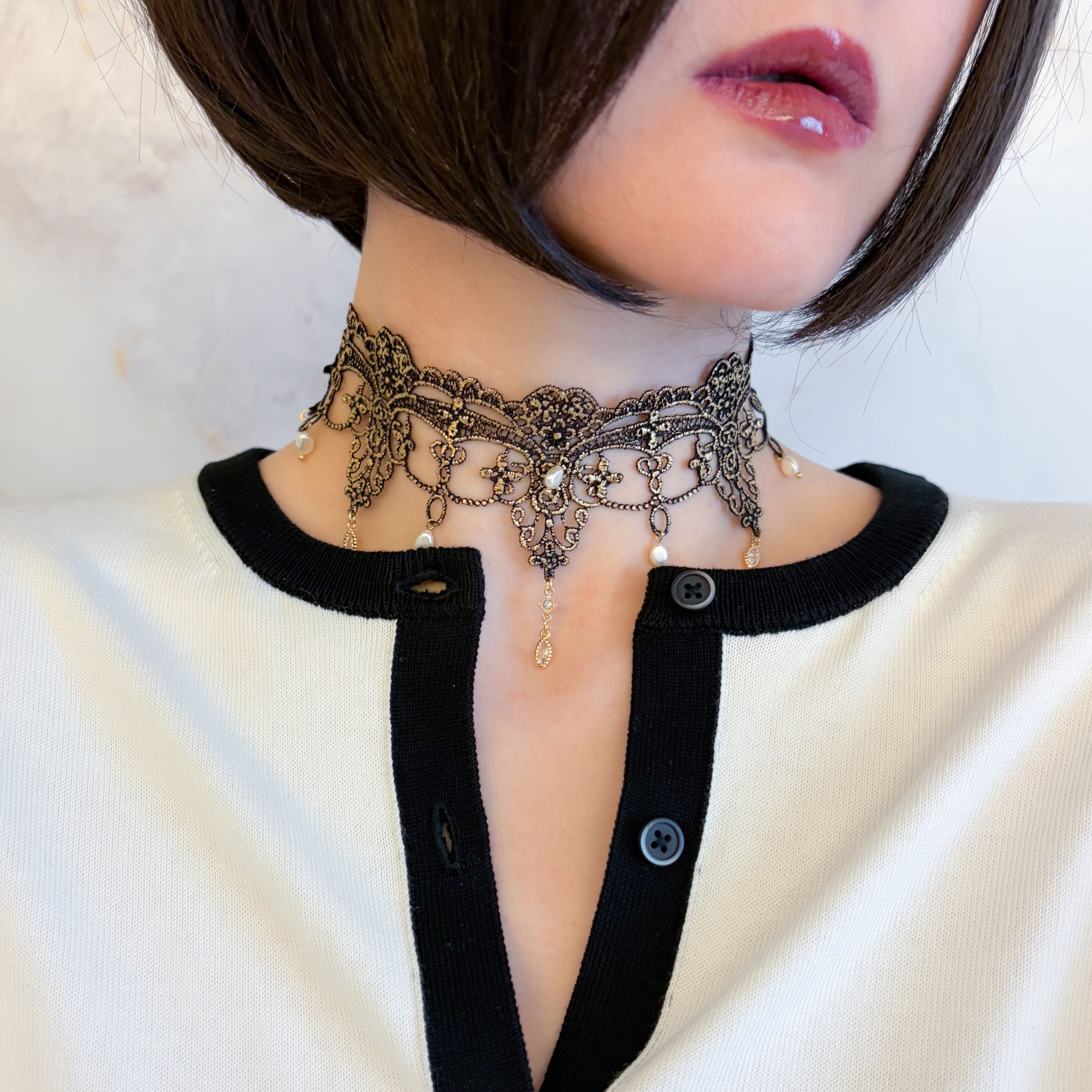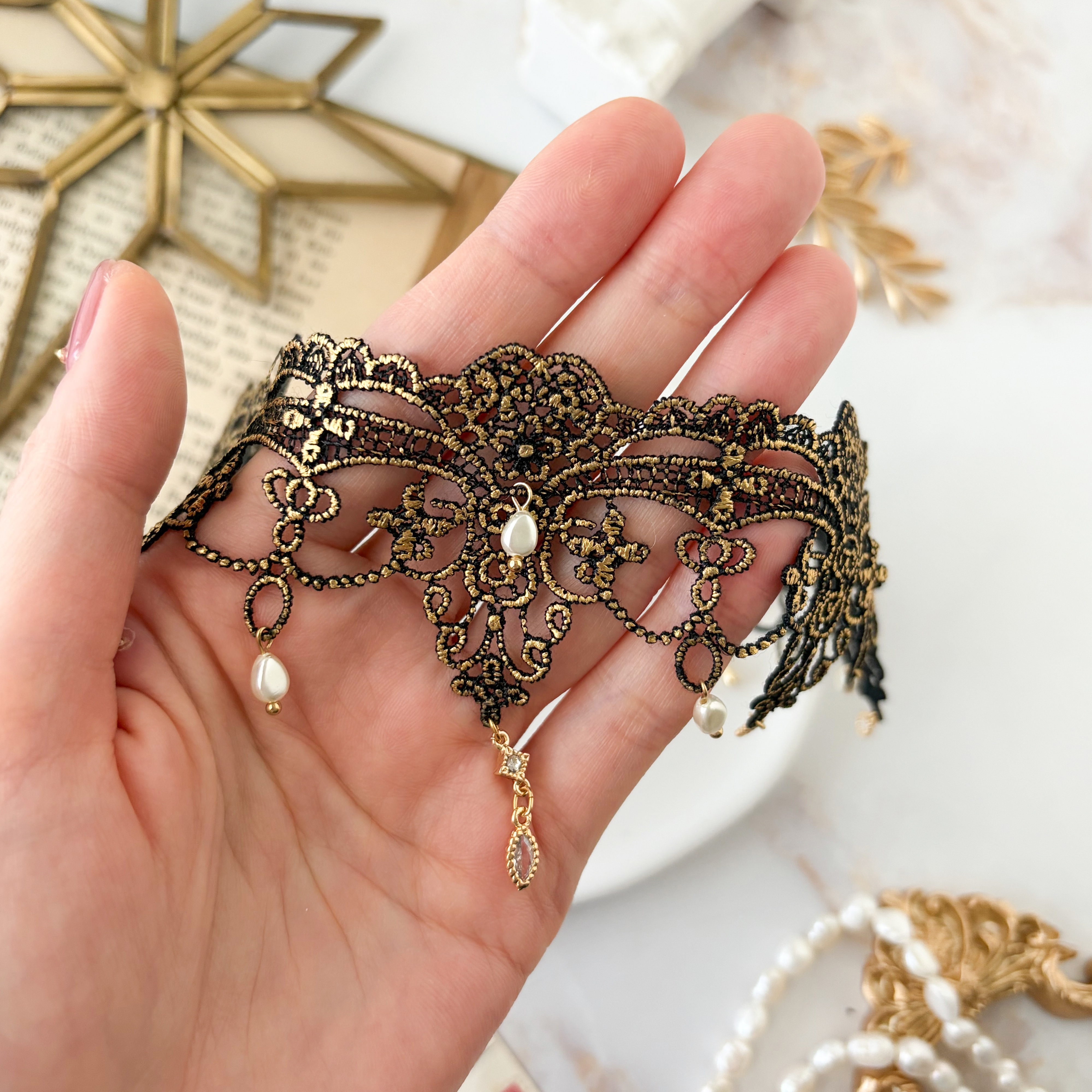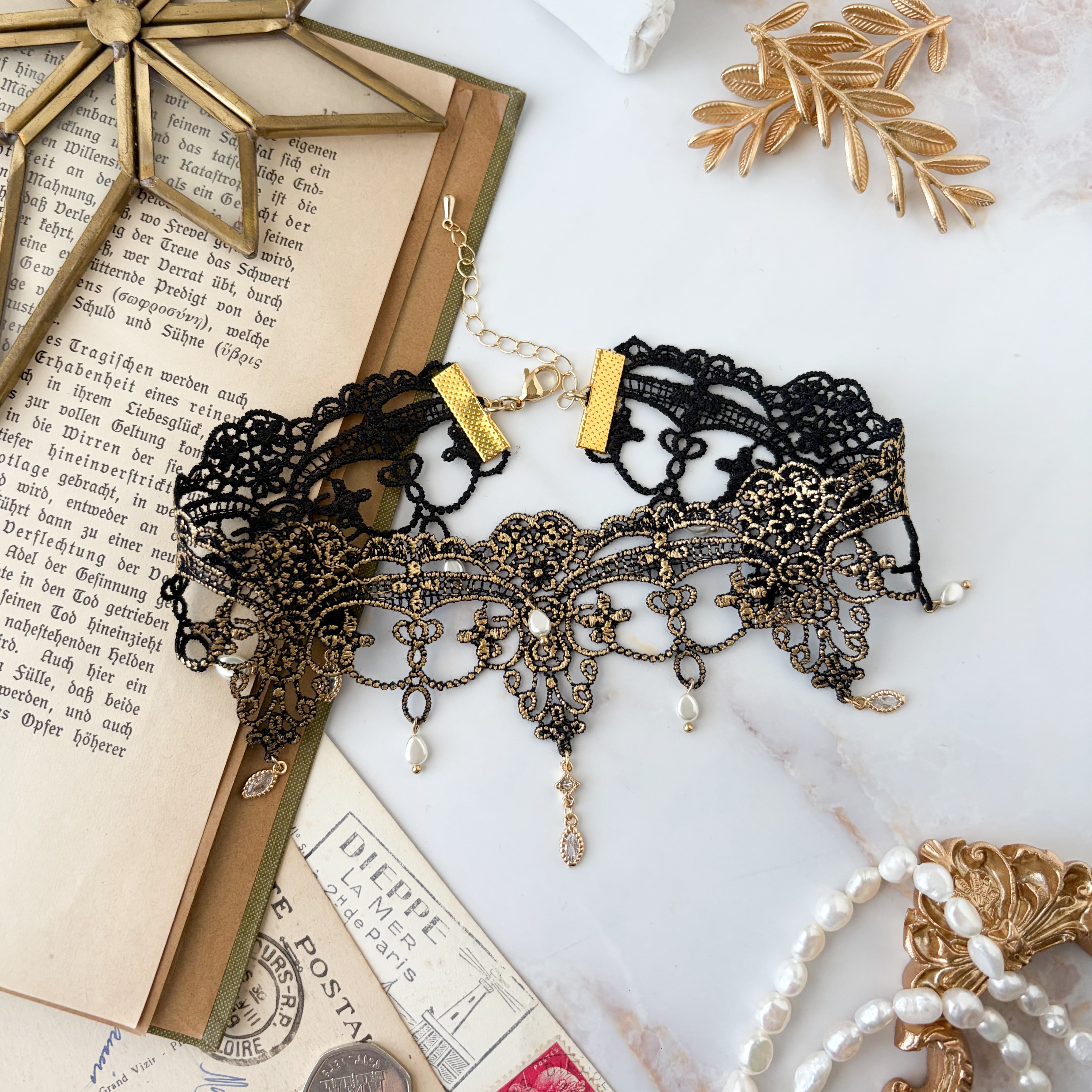 アフロディーテの儚き涙:アンティークゴールドレースのチョーカー SV698