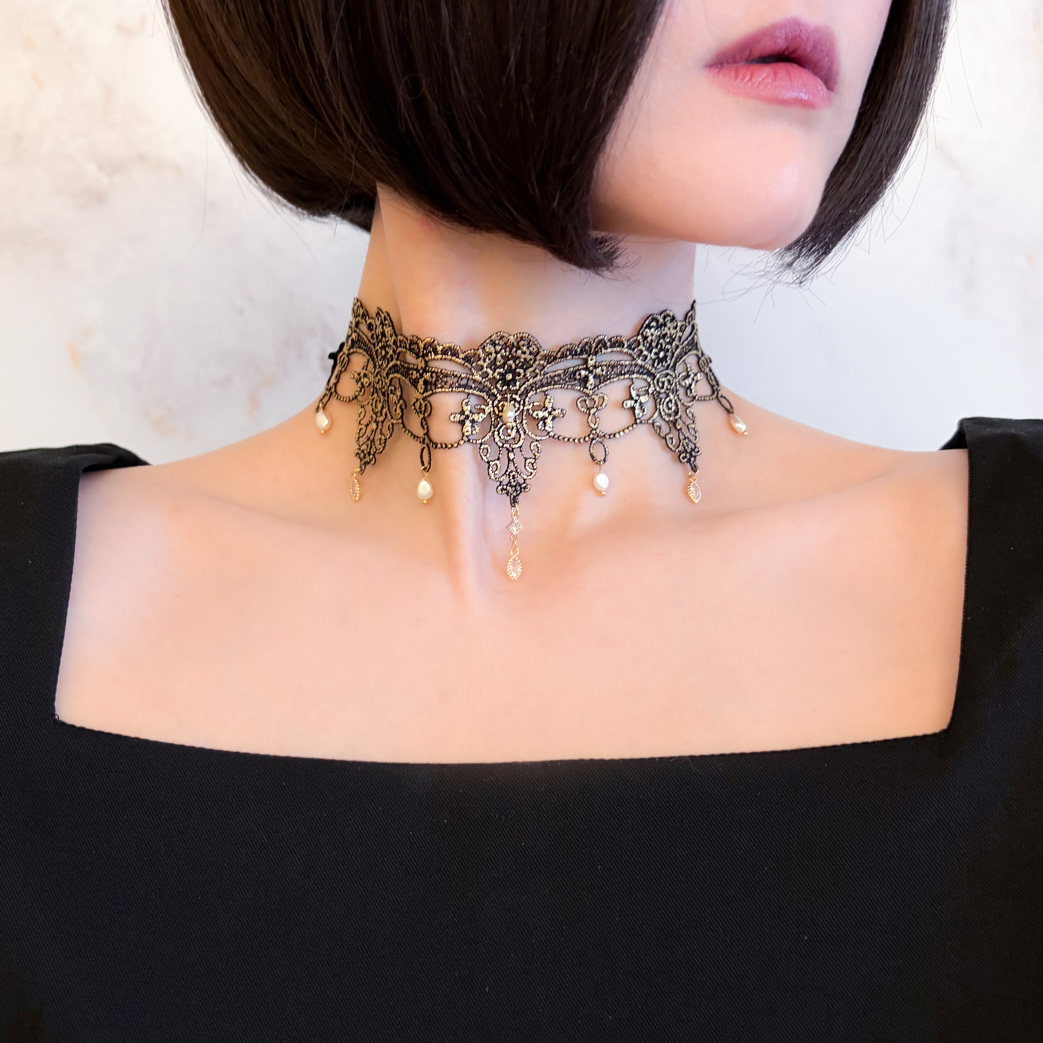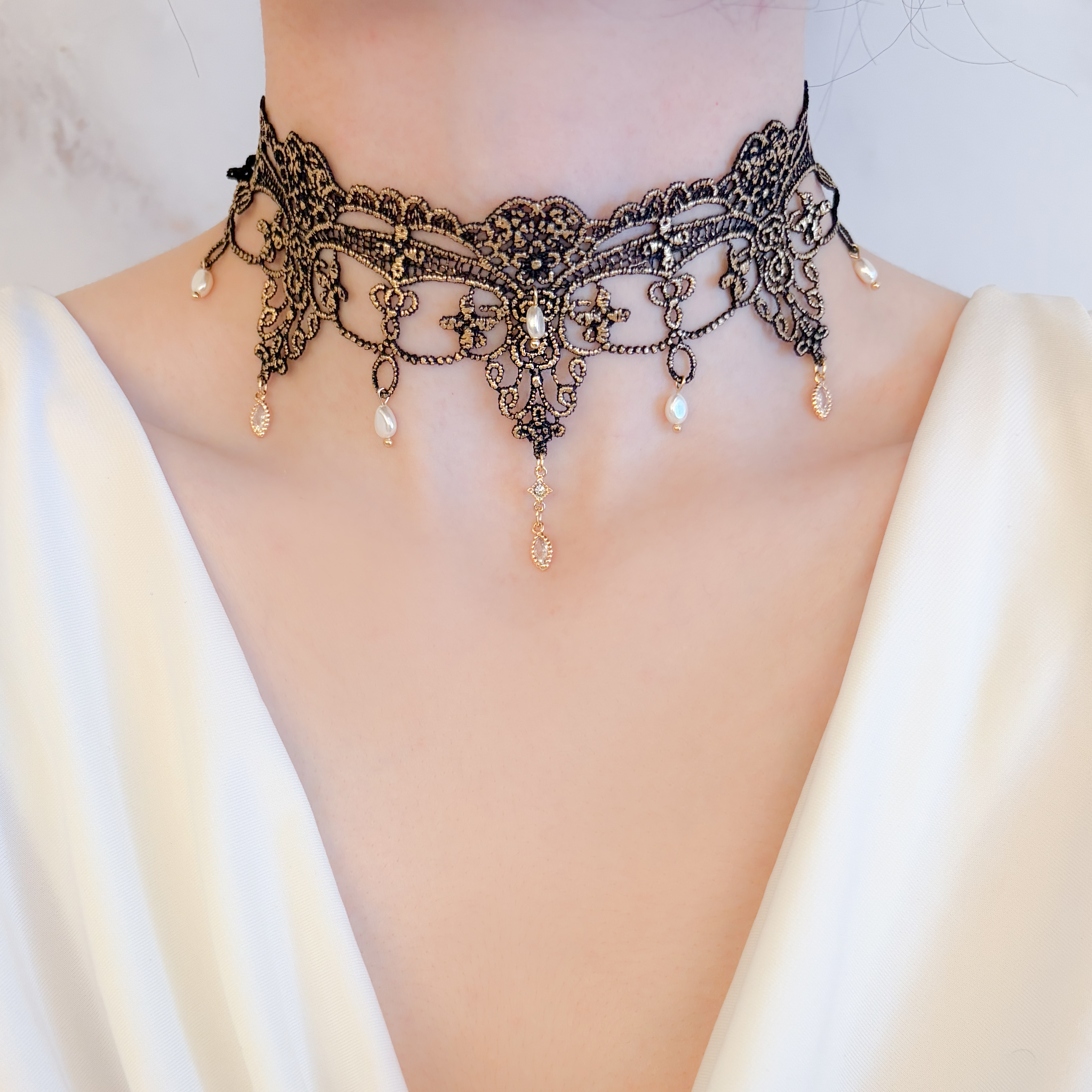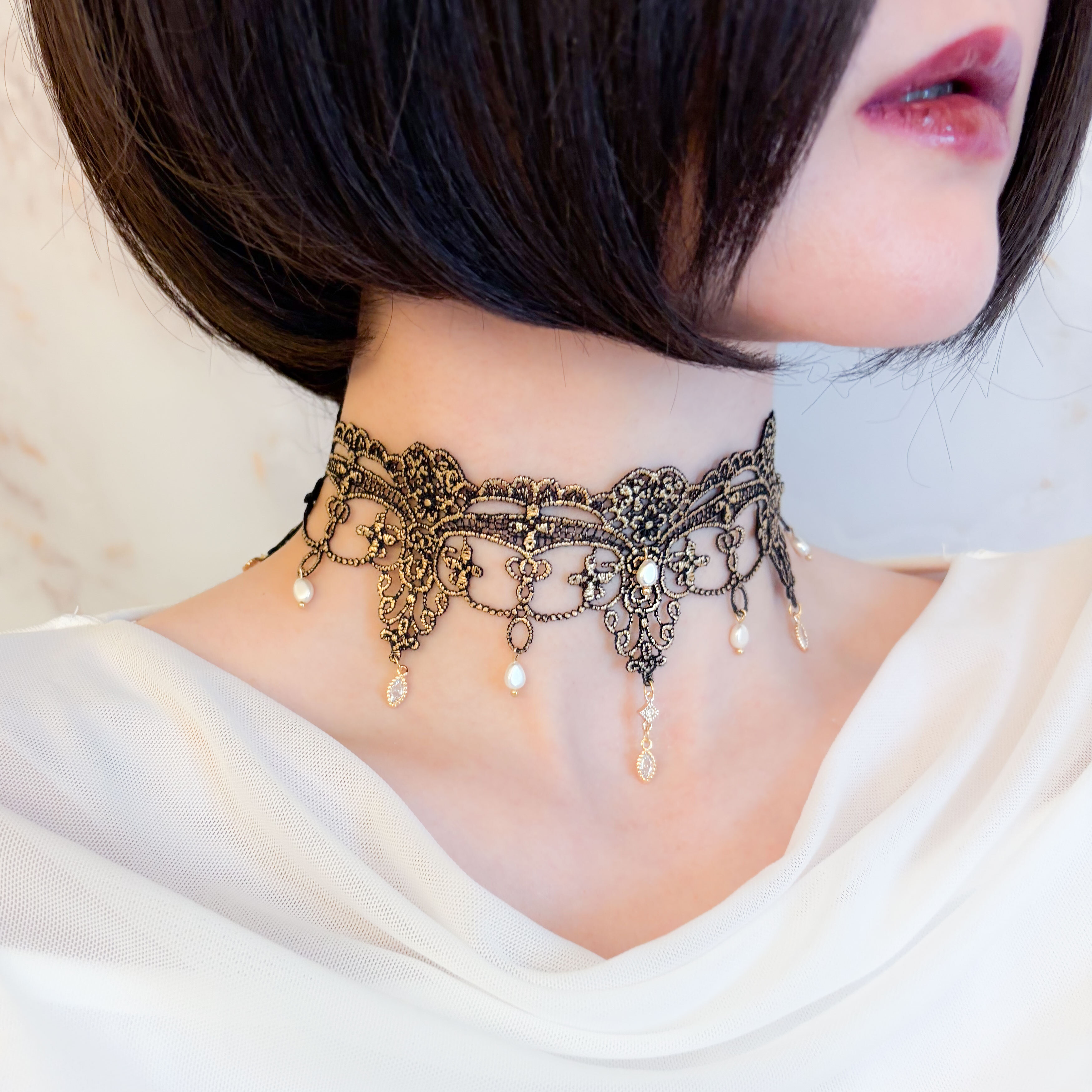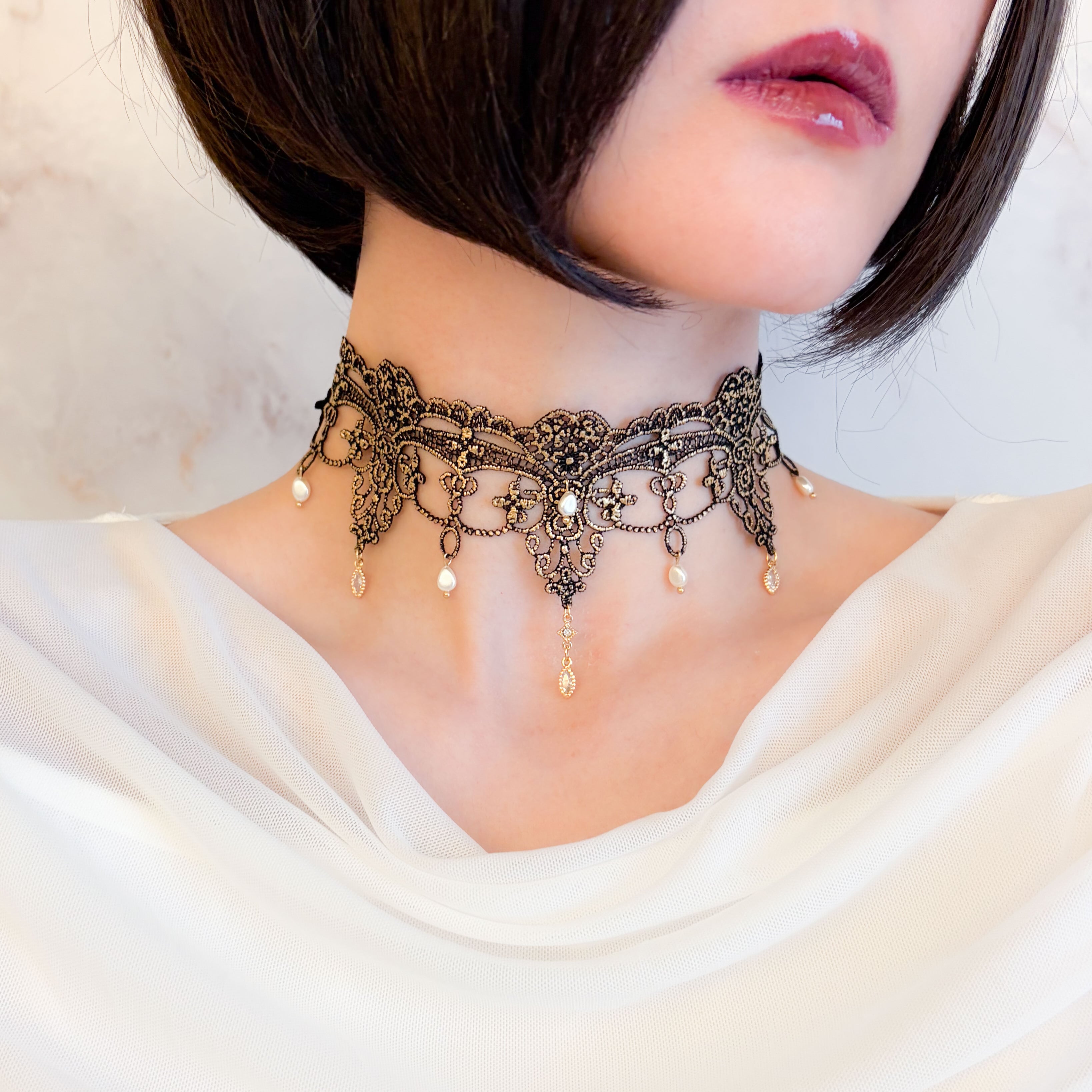 アフロディーテの儚き涙:アンティークゴールドレースのチョーカー SV698