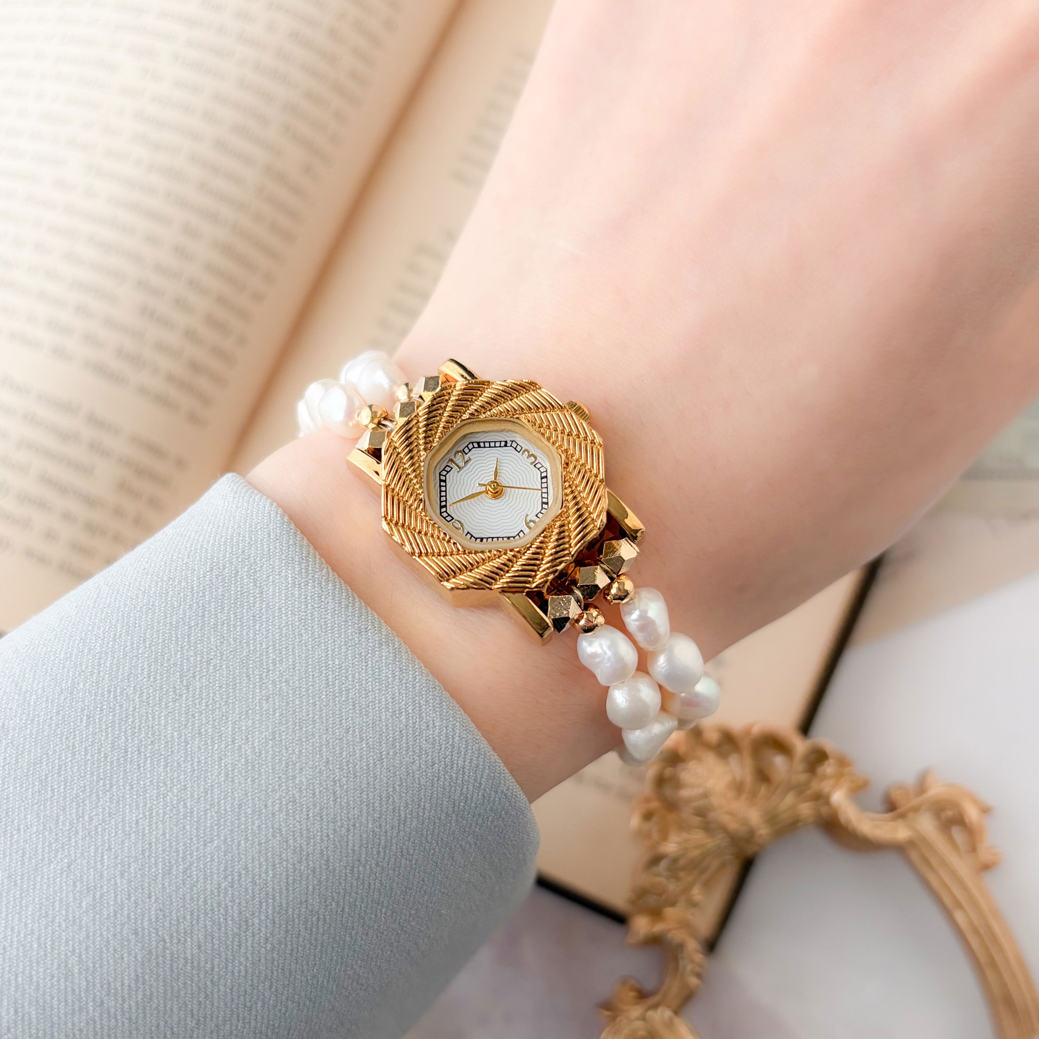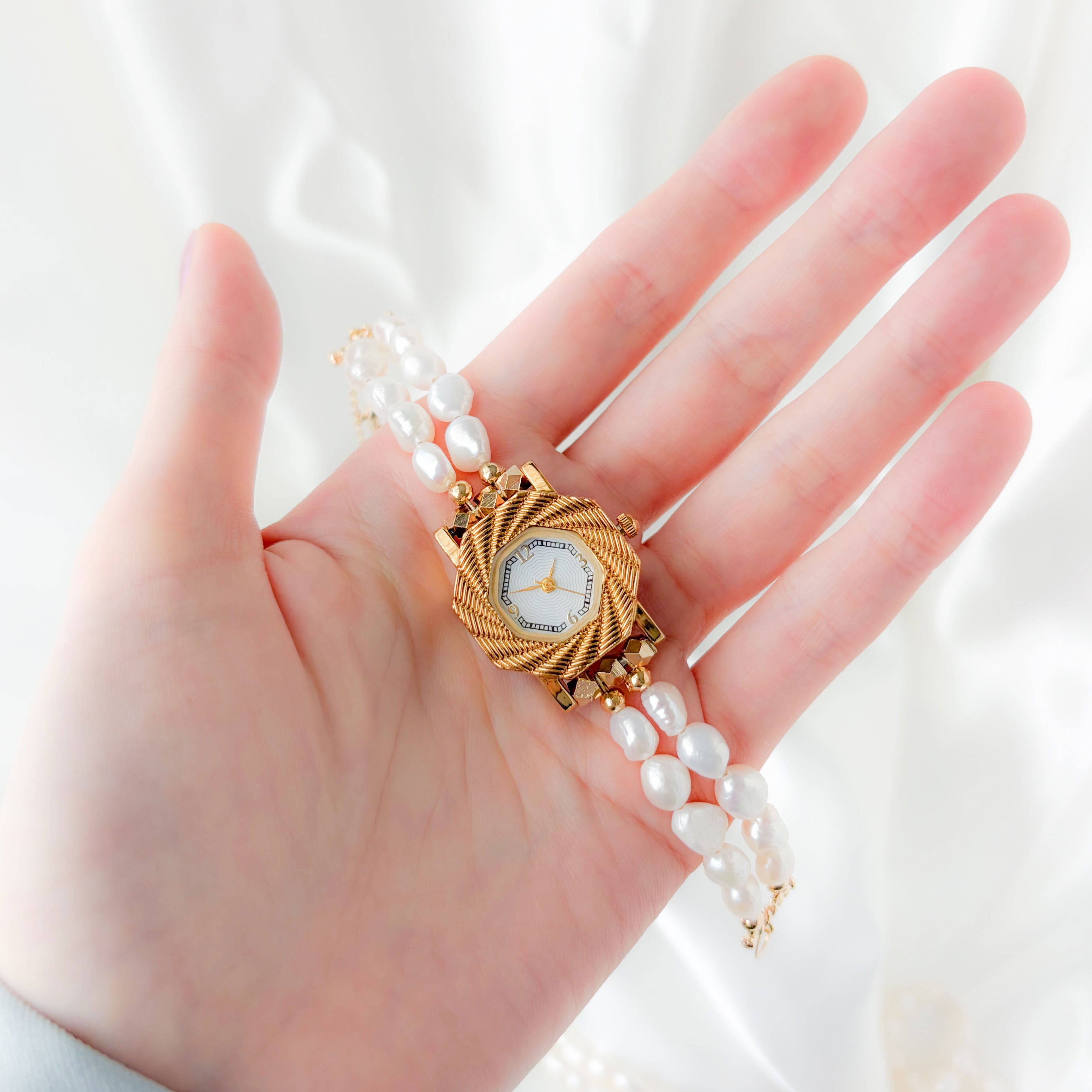 【期間限定販売】Valerie:淡水パールのレトロなブレスレットウォッチ LI217
