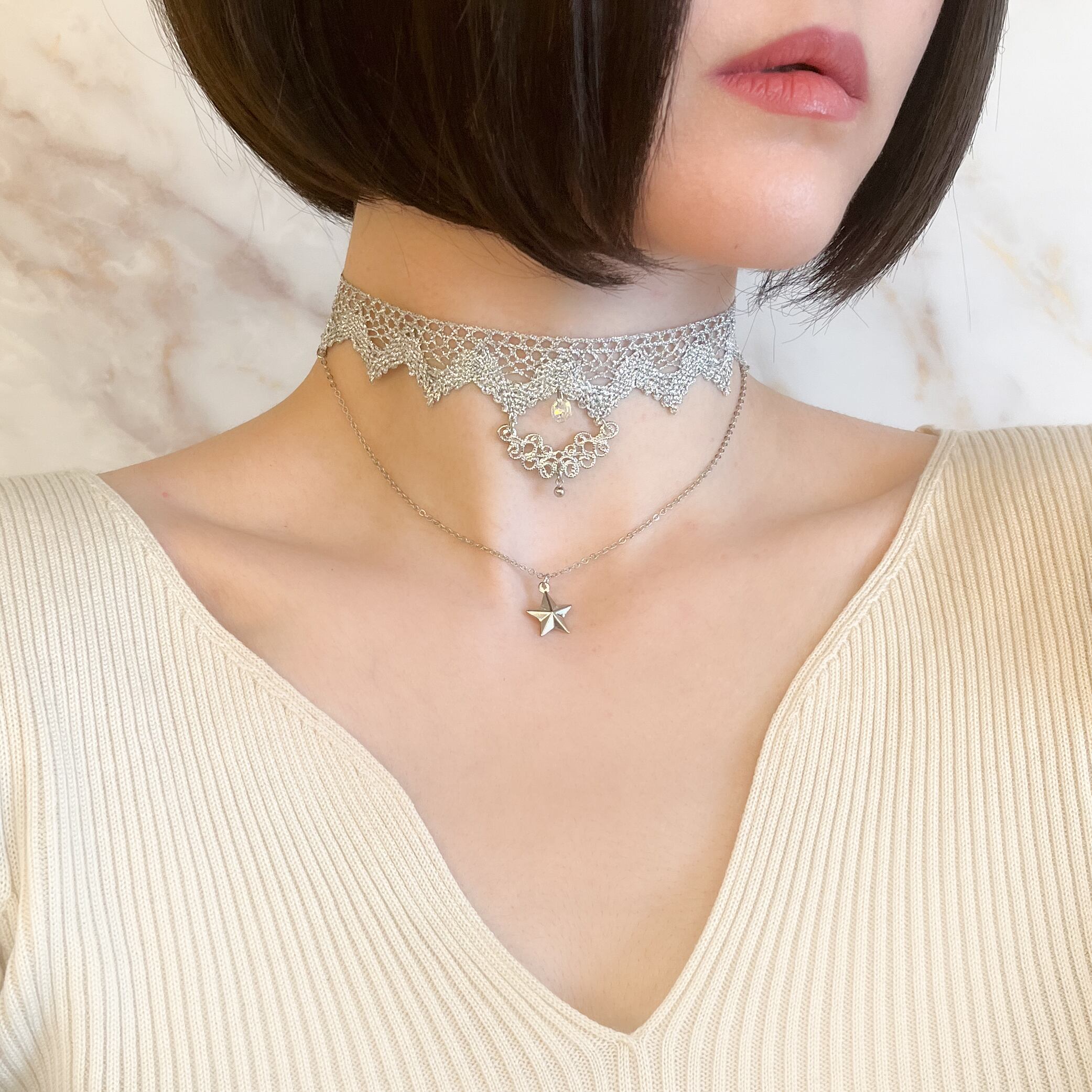 シルバー:シェヘラザードの首飾り:星とシルバーレースのチョーカー SV105S
