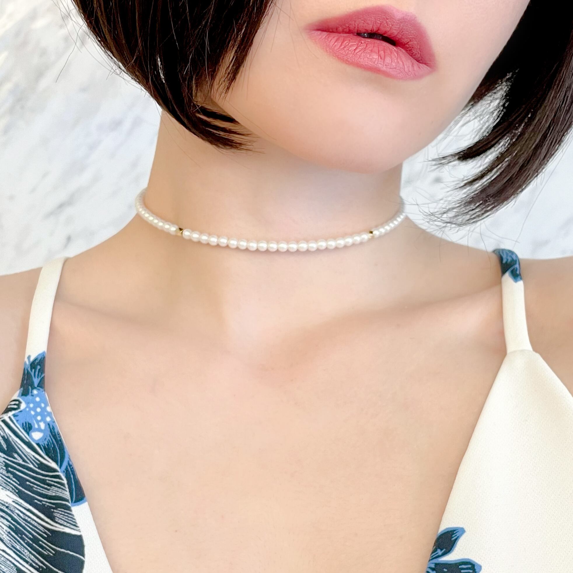 ワイシャツやタートルネックの上からさらっと着けれて、どんなお洋服にもあわせやすいシンプルなチョーカーです。