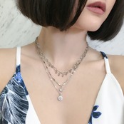 6ミリのチェーンに小さな丸いチャームを合わせ、シンプルなチョーカーネックレスに仕立てました。