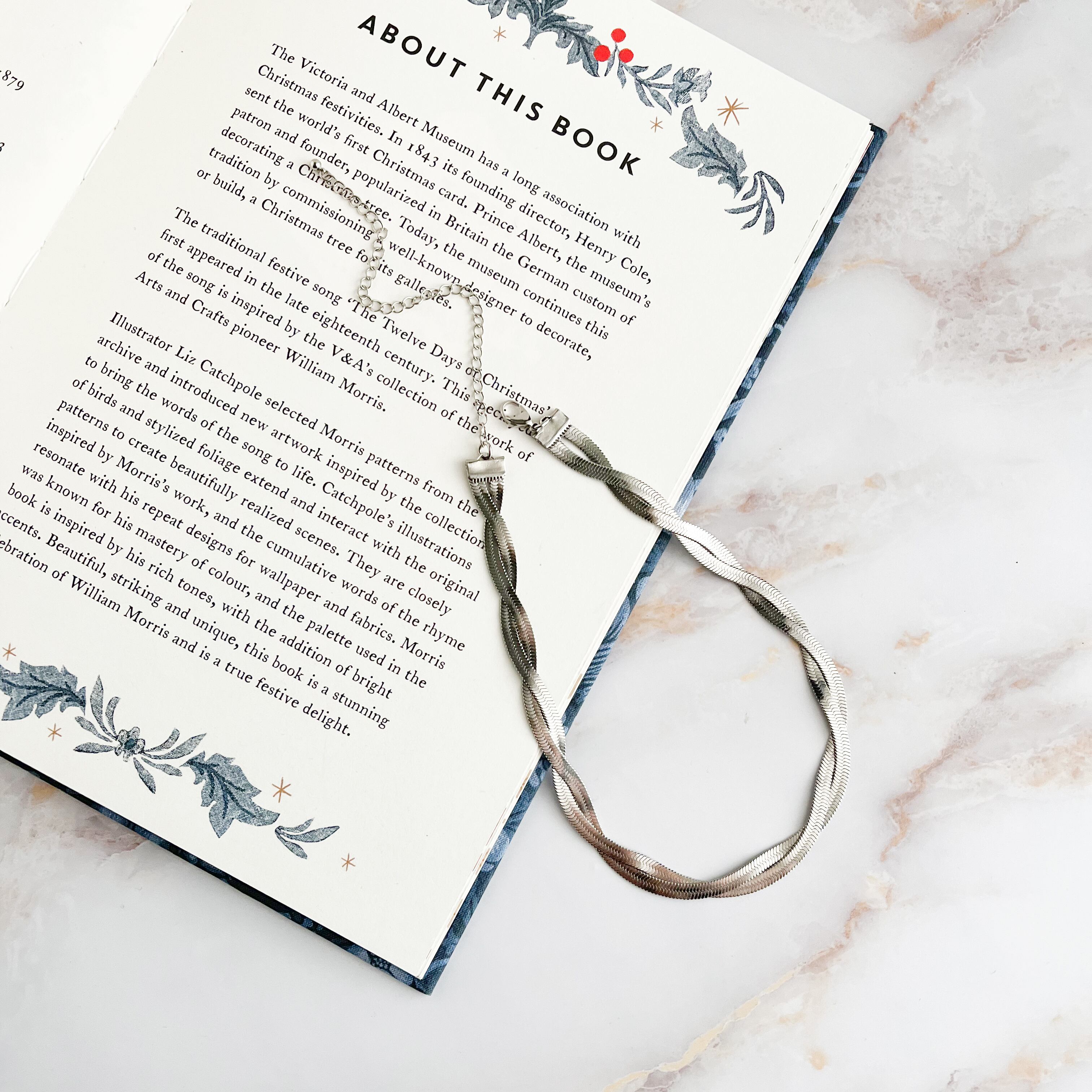 平べったいチェーンのヘリンボーンチェーンをツイストし、シンプルなチョーカーネックレスをお作りしました。